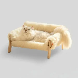 Canapé En Bois Et Fausse Fourrure Pour Chat Et Petit Chien