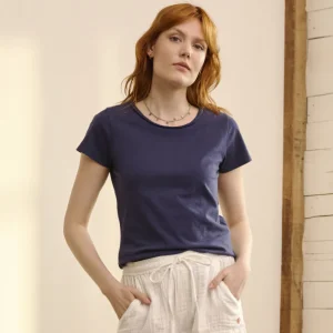 T-SHIRT À ENCOLURE TRESSÉE POUR FEMME MARINE