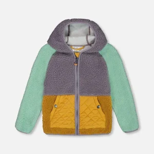 MANTEAU MI-SAISON ENFANT, SHERPA LILAS, TURQUOISE ET JAUNE (4 & 6 ans)