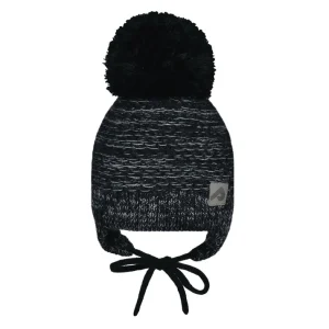 TUQUE À OREILLES POUR BÉBÉ, TRICOT NOIR (0 à 24 mois)