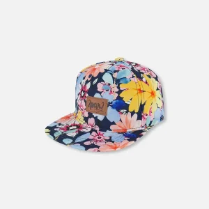 CASQUETTE POUR ENFANT, FLEURS MARINES, ROSES ET JAUNES