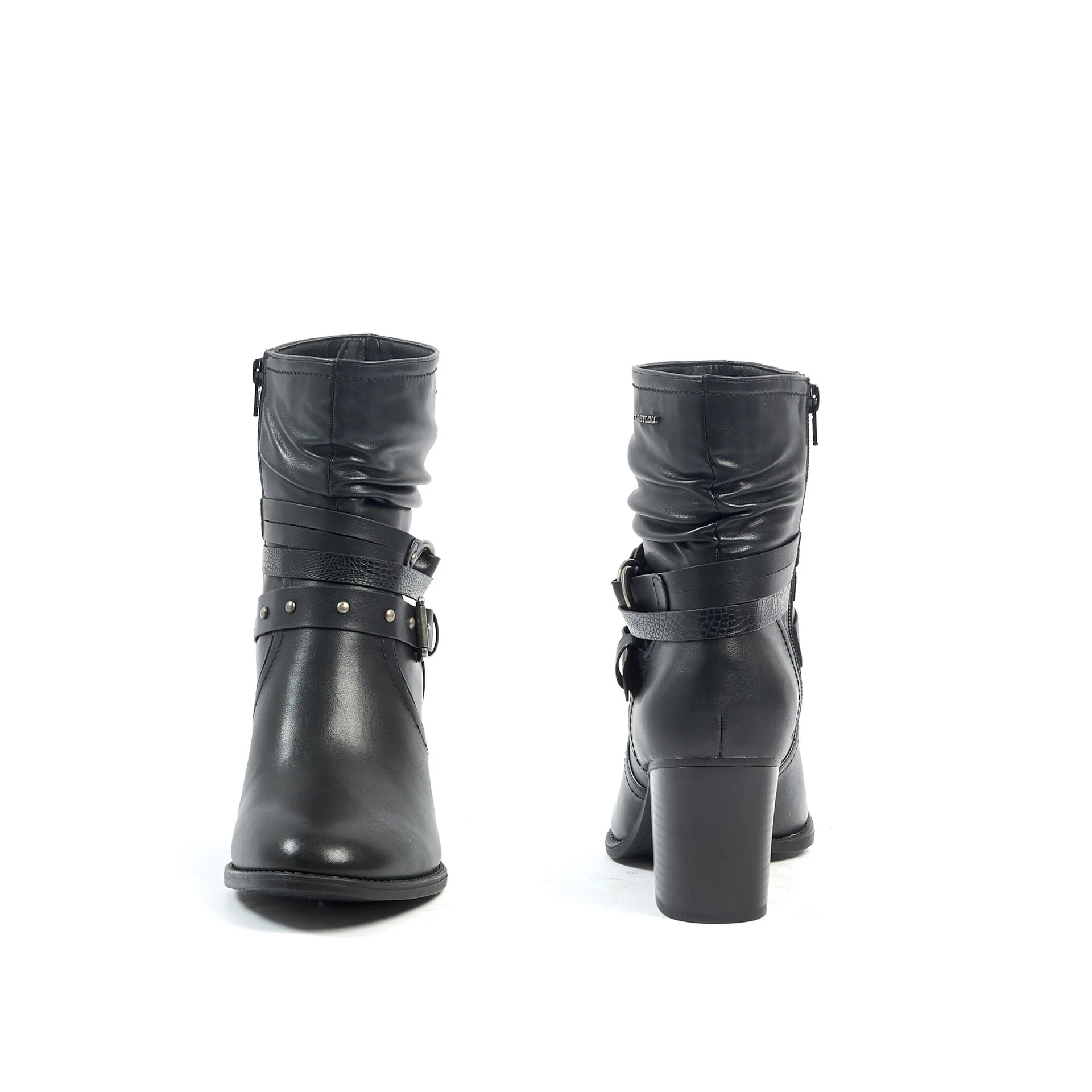 Les bottines noires Emma ajoutent une touche d’élégance intemporelle à votre garde-robe. Avec leur talon de 5 cm et leurs deux boucles distinctives. elles offrent un équilibre parfait entre style et fonctionnalité.