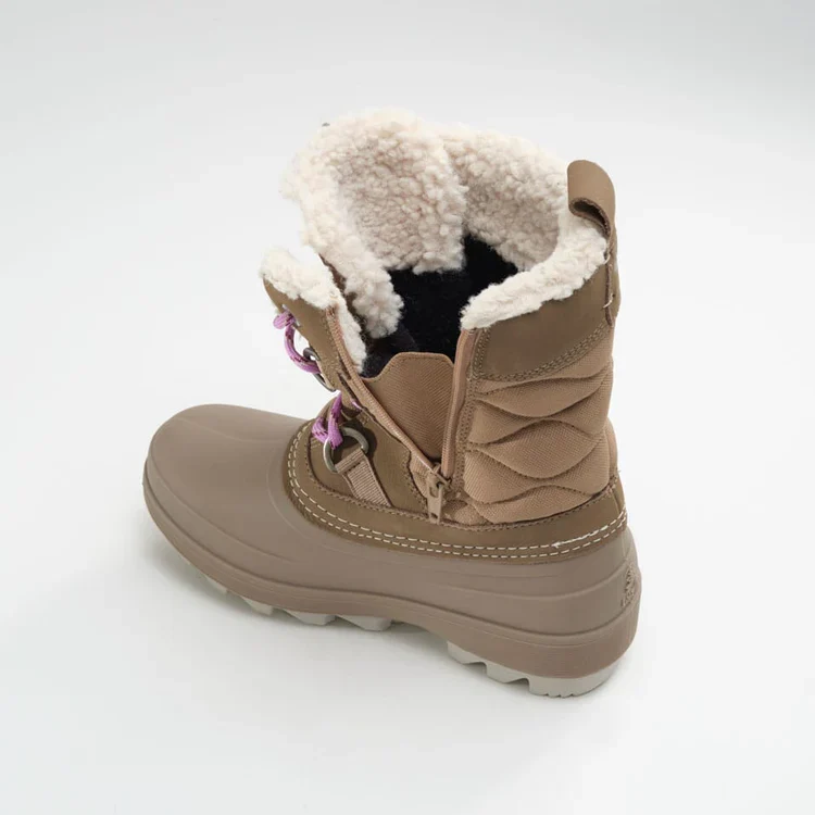 - Lacets à anneaux en D avec collet anti-neige en molleton doux : facilitent le serrage et le desserrage de la botte pour un ajustement personnalisé et un confort douillet.
