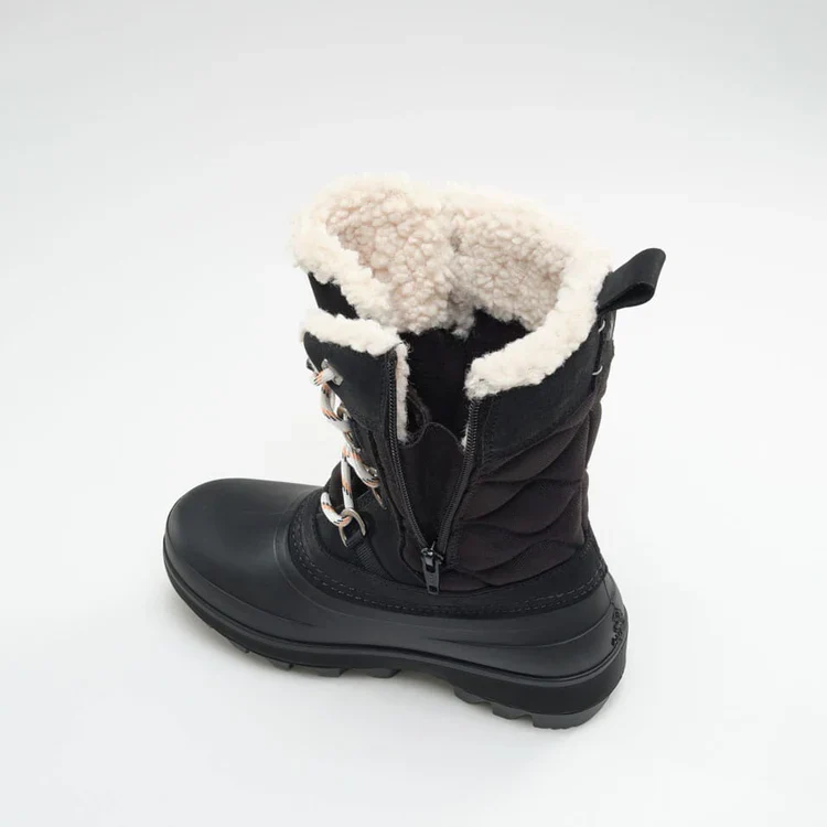 • Lacets à anneaux en D avec collet anti-neige en molleton doux : facilitent le serrage et le desserrage de la botte pour un ajustement personnalisé et un confort douillet.