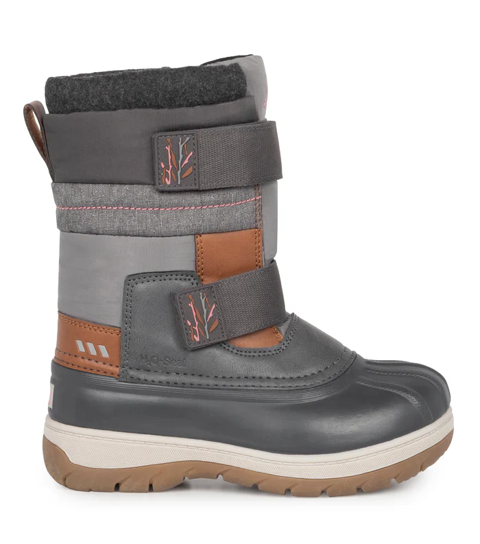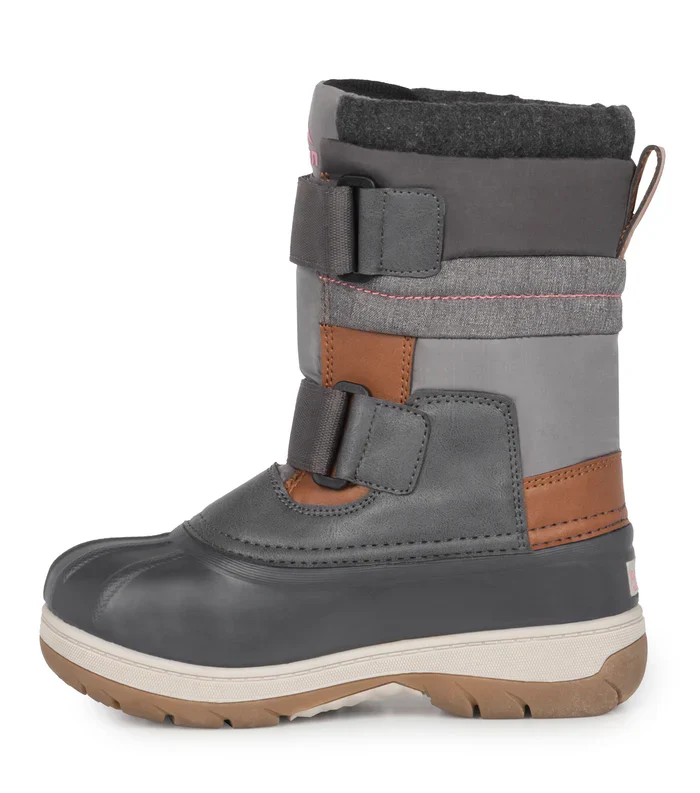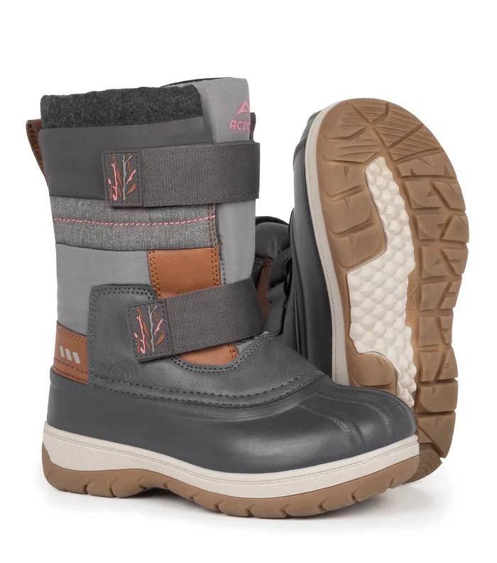 La botte d’hiver pour junior Taffy Gris & Rose de Acton est chaude et confortable avec son feutre amovible.
