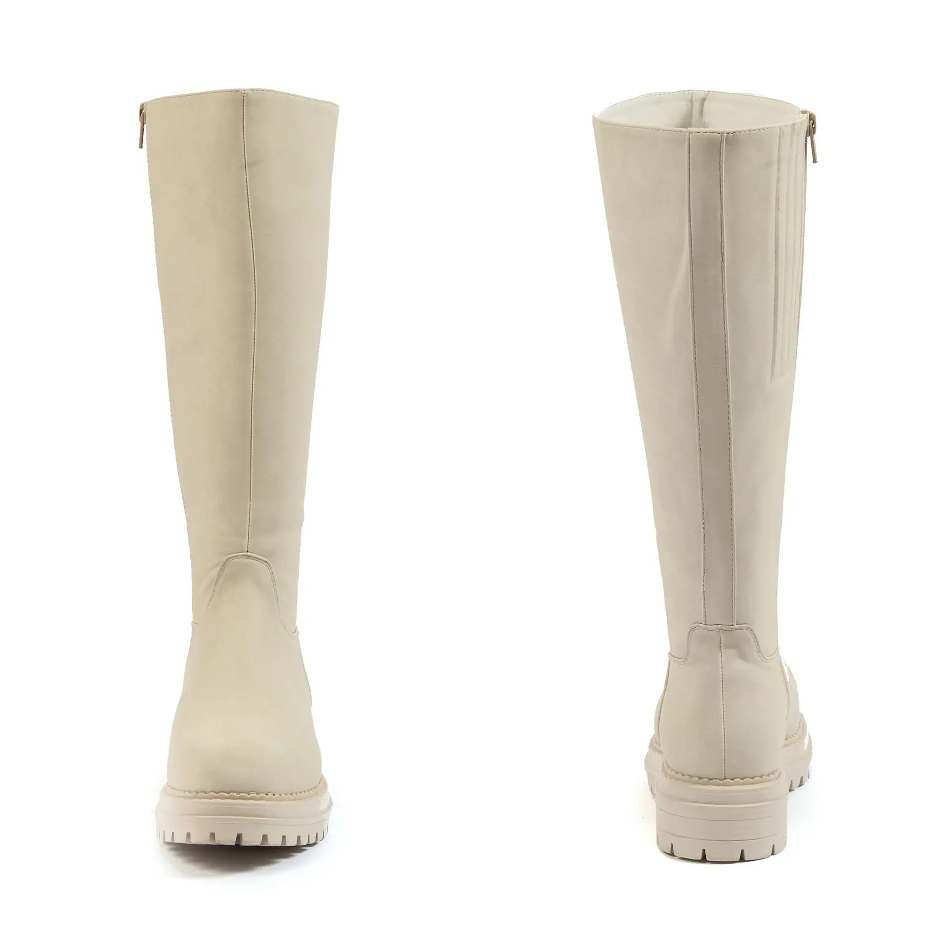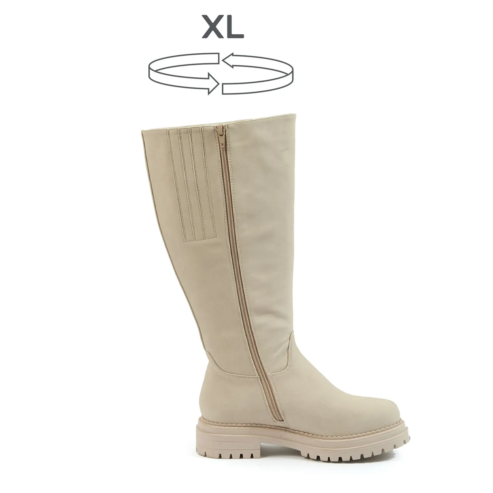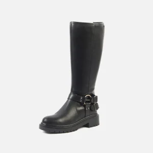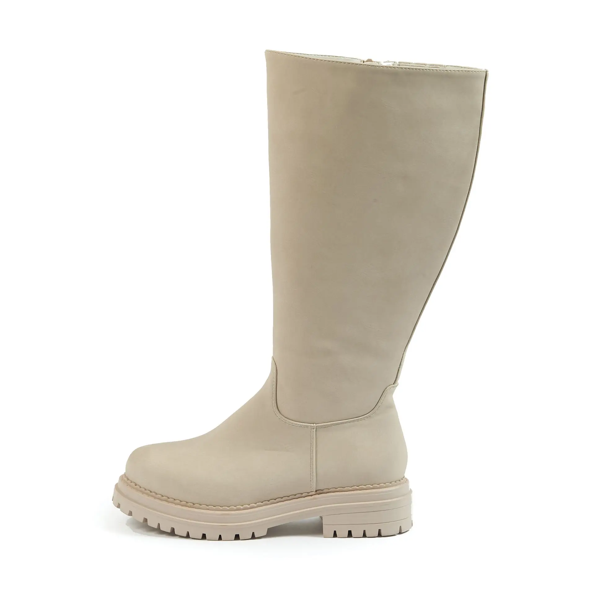 Ce modèle spécialement conçu pour les femmes qui ont des mollets larges est fabriqué en PU synthétique de haute qualité et monté sur un talon plat.