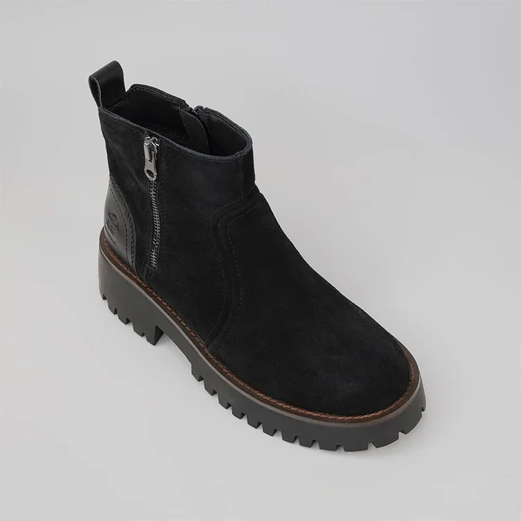 - Fermeture éclair décorative à l’extérieur : ajoute une touche de style à la botte.