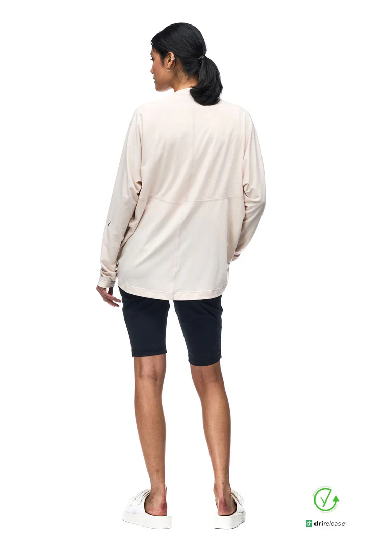 Le cardigan réversible KHADI coconut de Indyeva est parfait pour pour les soirées fraîches par dessus une robe ou pour une superposition légère en voyage ou plein air.