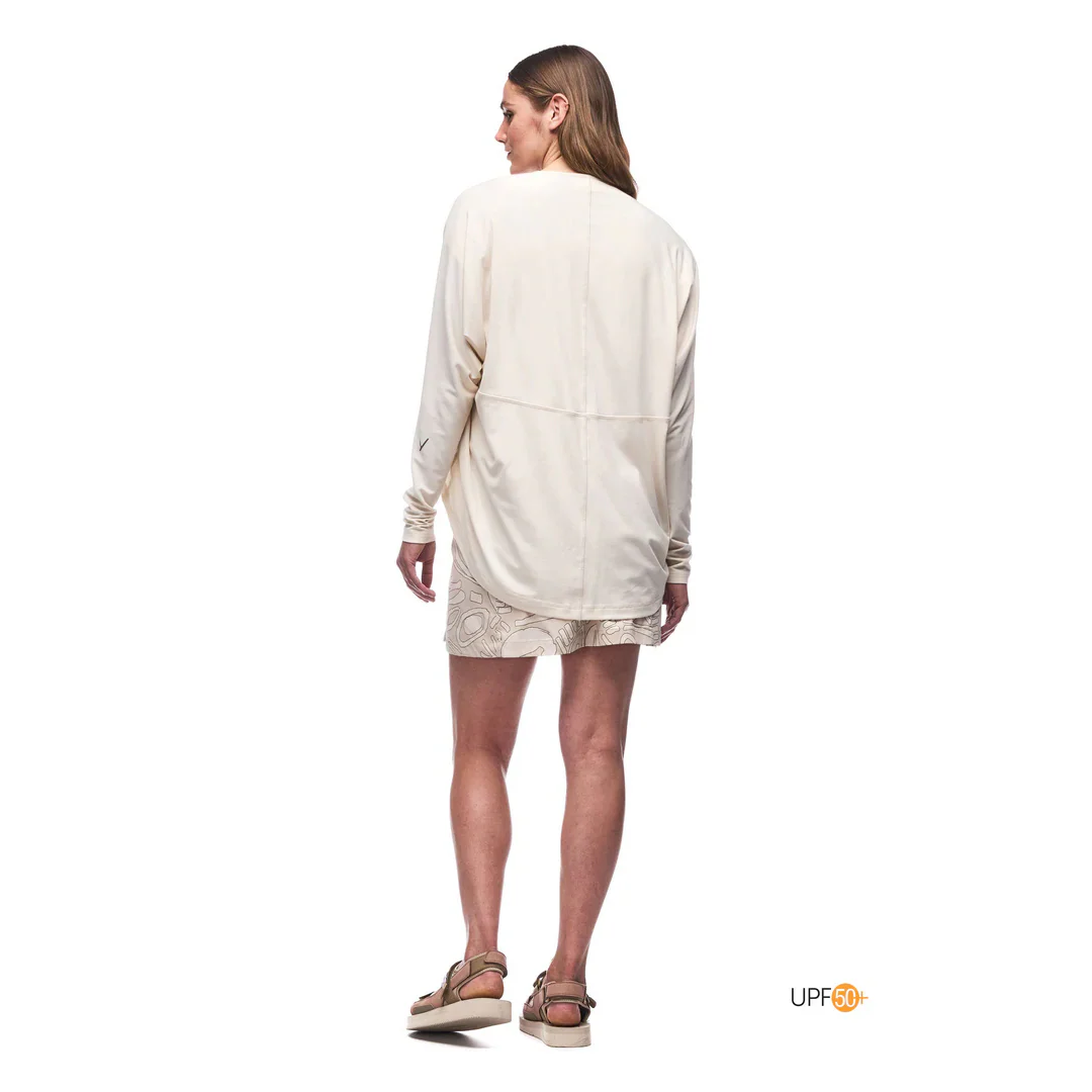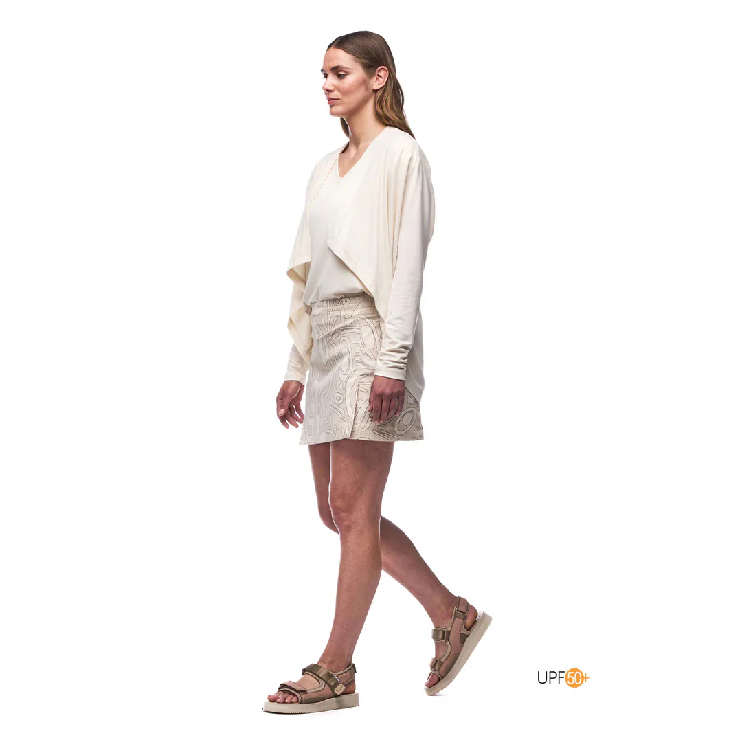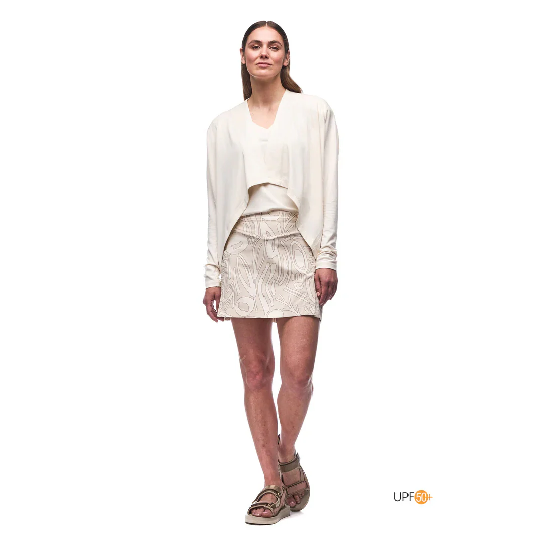 Le cardigan réversible KHADI beige de Indyeva est parfait pour les soirées fraîches par dessus une robe ou pour une superposition légère en voyage ou plein air.