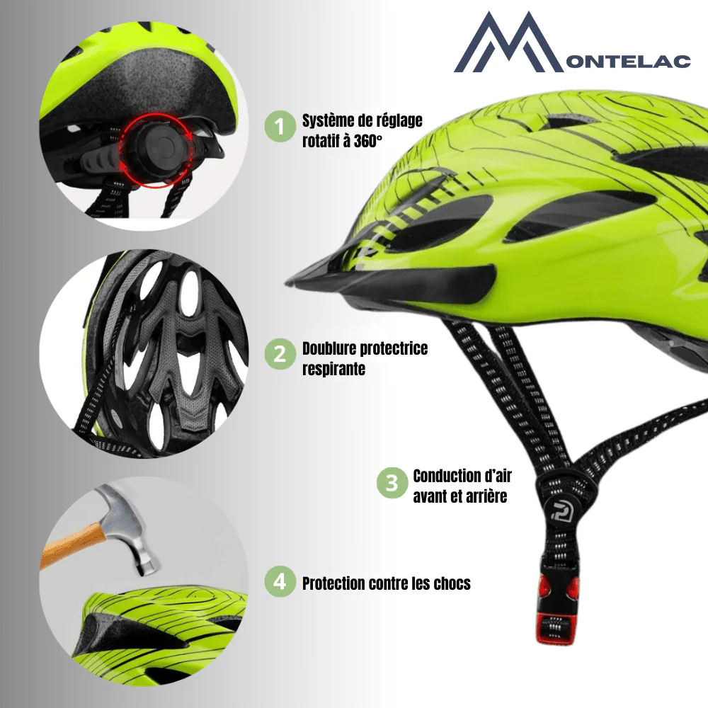 Ce casque de vélo est conçu pour les cyclistes recherchant confort, sécurité et praticité lors de leurs sorties. Grâce à sa conception légère et à son ajustement ergonomique, il assure une tenue stable sans points de pression. Montelac propose un modèle adapté aux trajets quotidiens comme aux longues randonnées, tout en maintenant une bonne circulation de l’air.