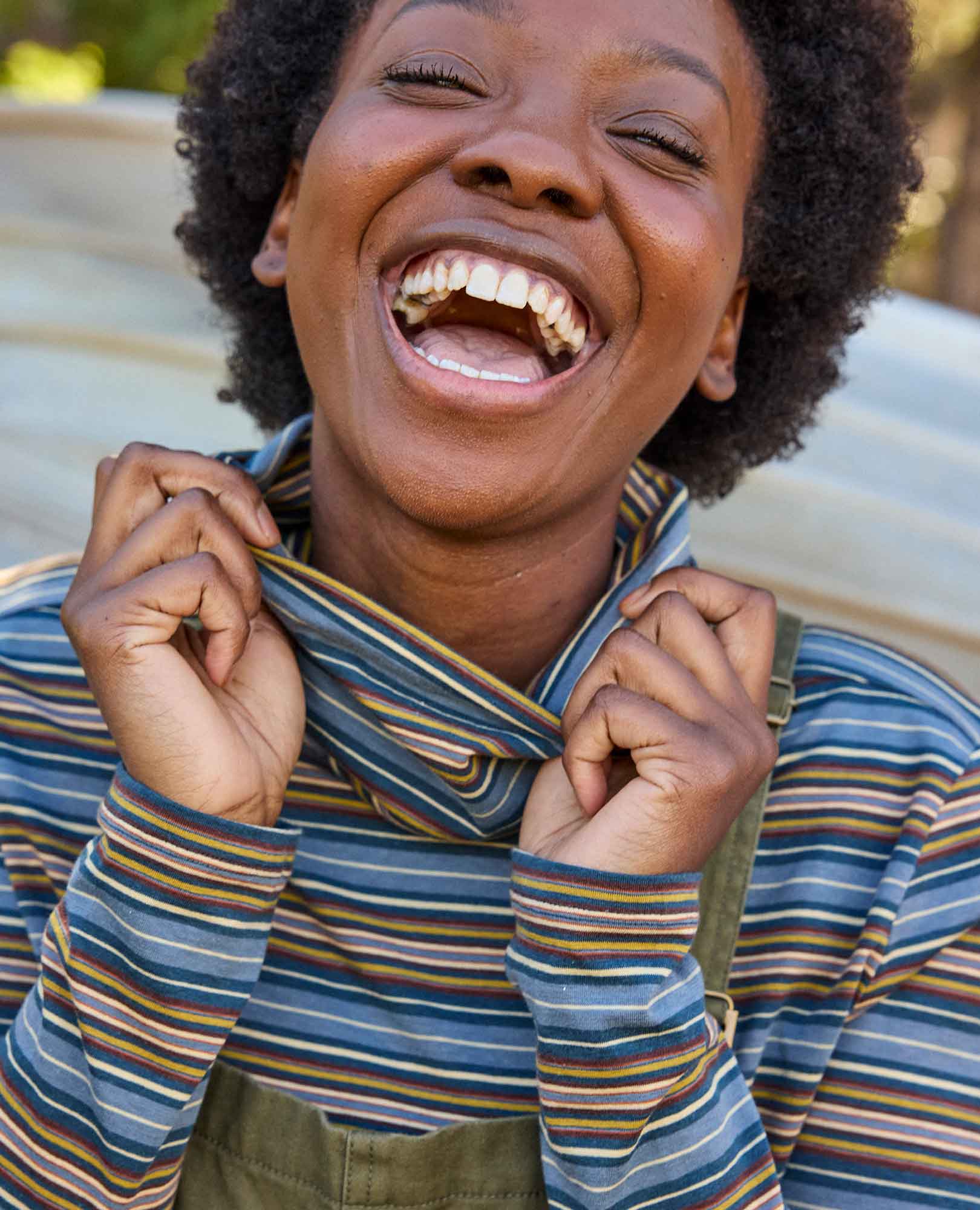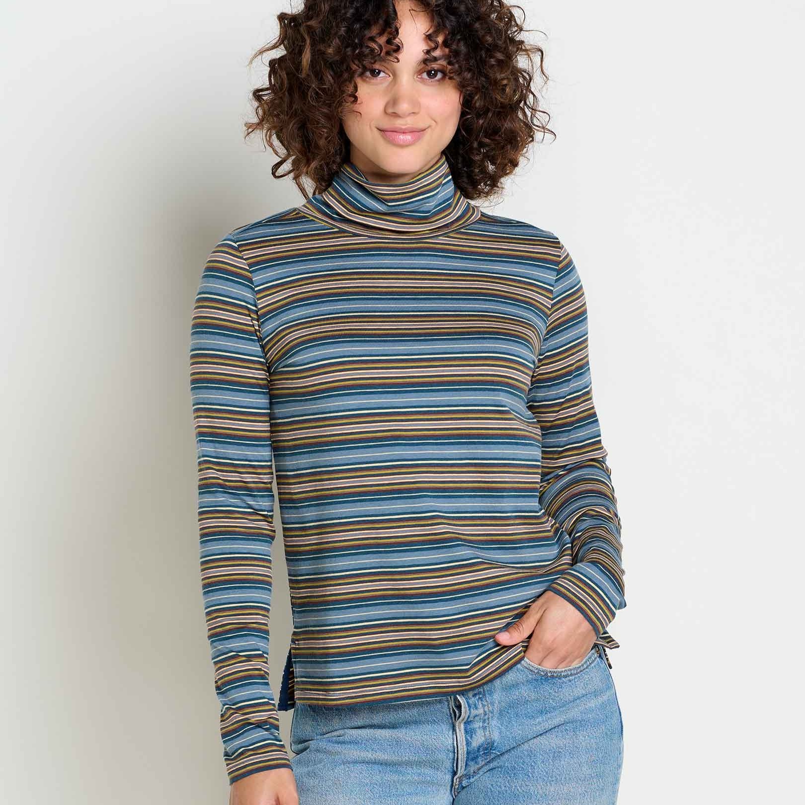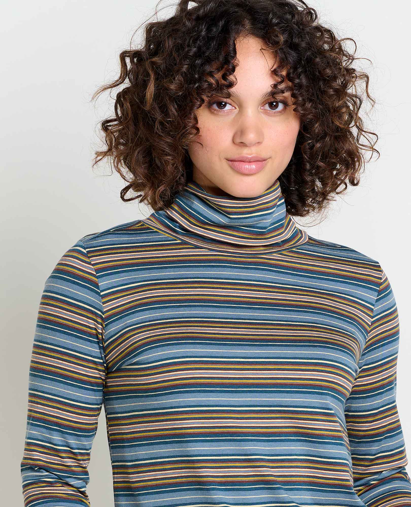 Le col roulé pour femme Maisey de Toad & Co se porte aussi bien en superposition que seul.