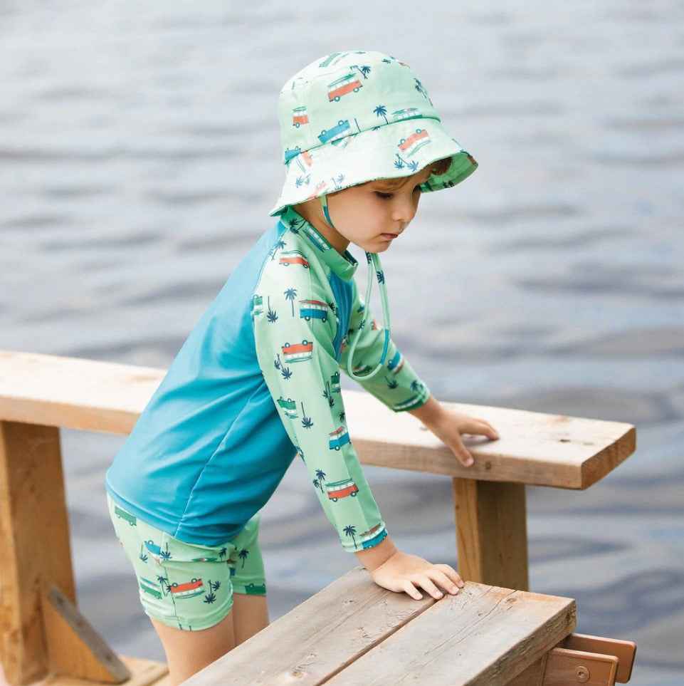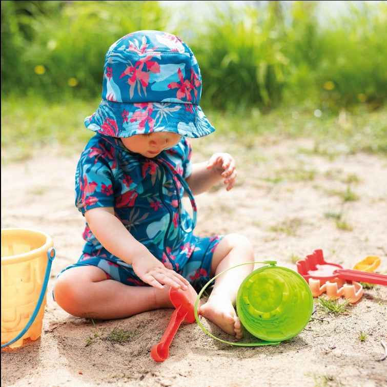 À la plage ou à la garderie, le chapeau uv de Perlimpinpin protége les tout-petits du soleil.