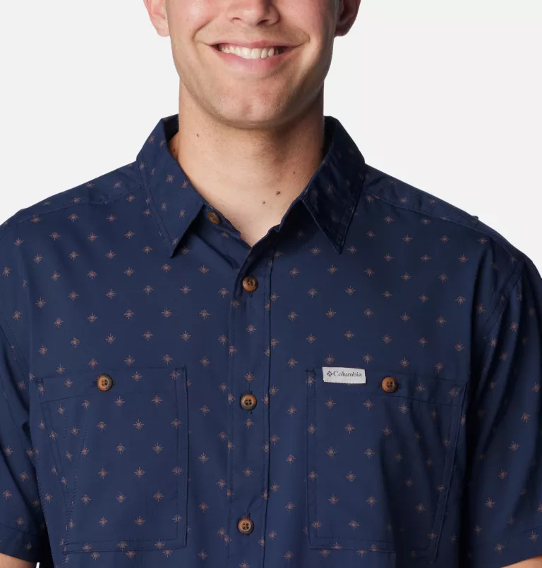 La chemise à manches courtes pour homme est fabriquée dans un tissu technique qui la rend pratique et confortable pour les chaudes journées d’été.