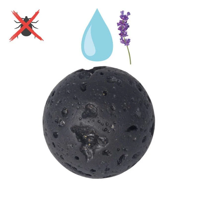 - Pierre de lave : Sa porosité permet d’ajouter une goutte d’huile essentielle de lavande, réputée pour repousser efficacement tiques et puces.