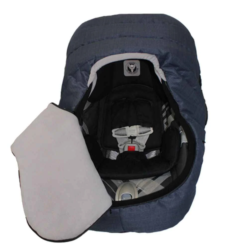 - Deux ouvertures à glissières sur le dessus donnent beaucoup d’aisance afin d’installer bébé dans son siège. Le dessus amovible peut aussi s’enlever complètement pour les jours plus chauds!