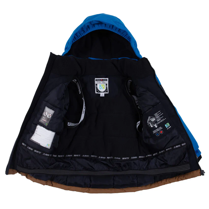 - Dos, col, capuchon, plaquette intérieure, poches et fessier doublés en micropolaire