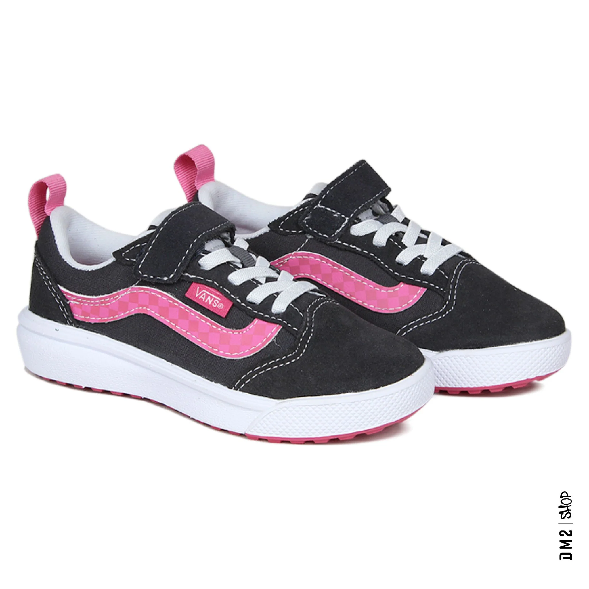 Fermetures auto-agrippantes pour un ajustement personnalisé, tige en cuir synthétique et semelle intermédiaire UltraCush™ légère pour un confort et des performances supérieures. Parfaitement adapté à l’aventure des tout-petits avec les mini-crampons co-moulés sur la semelle extérieure en caoutchouc et l’emblématique Sidestripe™ de Vans.
