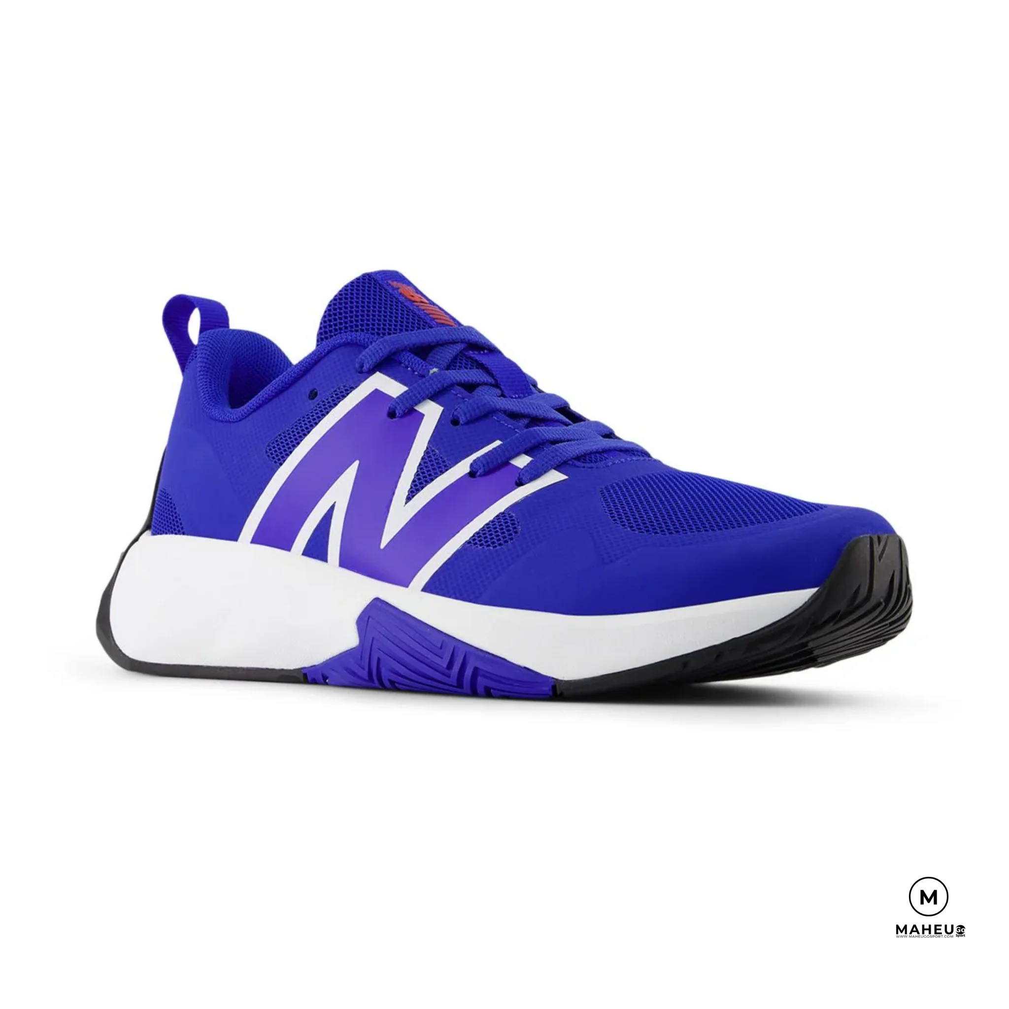 Les espadrilles junior FuelCell Play bleu de New Balance offrent un confort optimal grâce à leur tige en tissu maillé respirant qui maintient les pieds au frais.