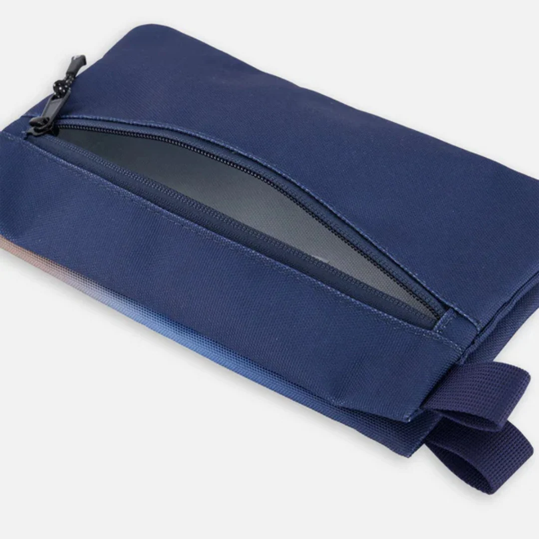L’étui à crayons dégradé bleu et beige est d’une bonne dimension pour ranger crayons, stylos et gommes à effacer. Complète avec la boîte à lunch, le sac à cordon et le sac d’école coordonnés pour un look parfait !