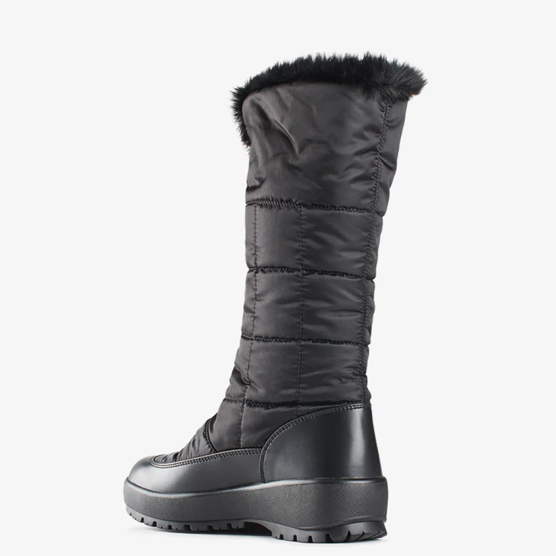 Choisissez l’élégance cet hiver avec le modèle Flora qui assurera votre confort et votre stabilité sur tous types de surfaces. Fait à partir de matériaux véganes, ces bottes sont dotées d’un extérieur en PU avec rembourrage matelassé et d’une fermeture éclair sur toute la longueur avant de la jambe permettant de créer un effet allongé et ultra féminin.