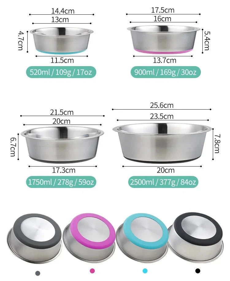 Gamelle en acier inoxydable avec base en silicone pour Chien