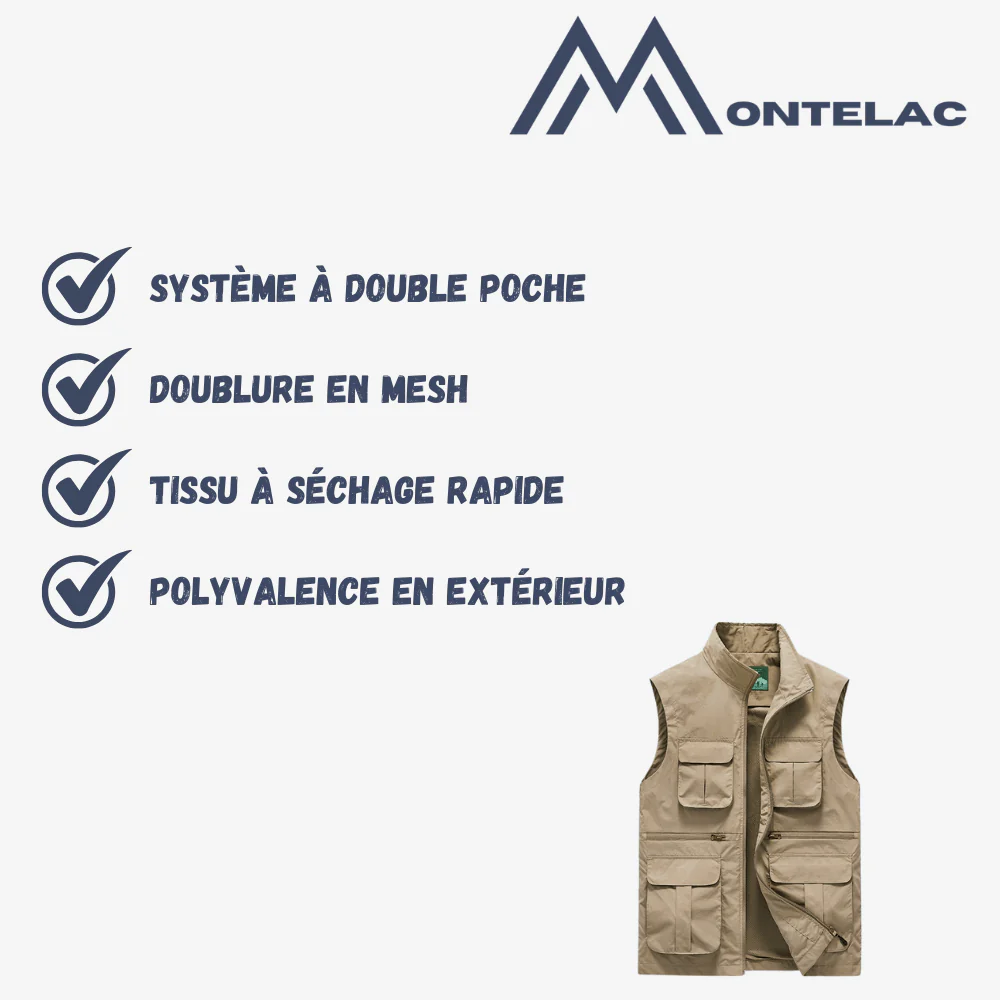 Ce gilet léger est conçu pour les activités extérieures telles que la randonnée, la pêche ou les voyages. Il offre une couche pratique et fonctionnelle grâce à son tissu à séchage rapide et à sa conception multi-poches. Montelac propose ici un vêtement polyvalent, adapté aux déplacements en plein air tout au long de l’année.