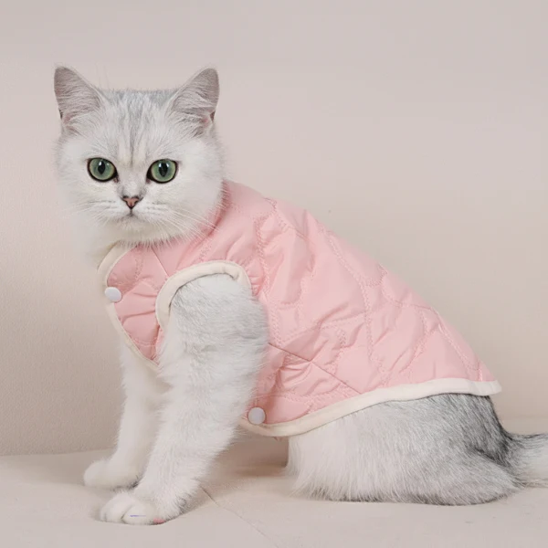 Ce gilet doublé pour chat est chaud et combine des teintes pastel et une coupe classique pour s’adapter à tous les styles et occasions. Conçu pour les chats, il apporte une couverture légère mais efficace contre le froid tout en restant facile à porter. Son coloris élégant s’accorde avec toutes les tenues et convient à toutes les saisons.