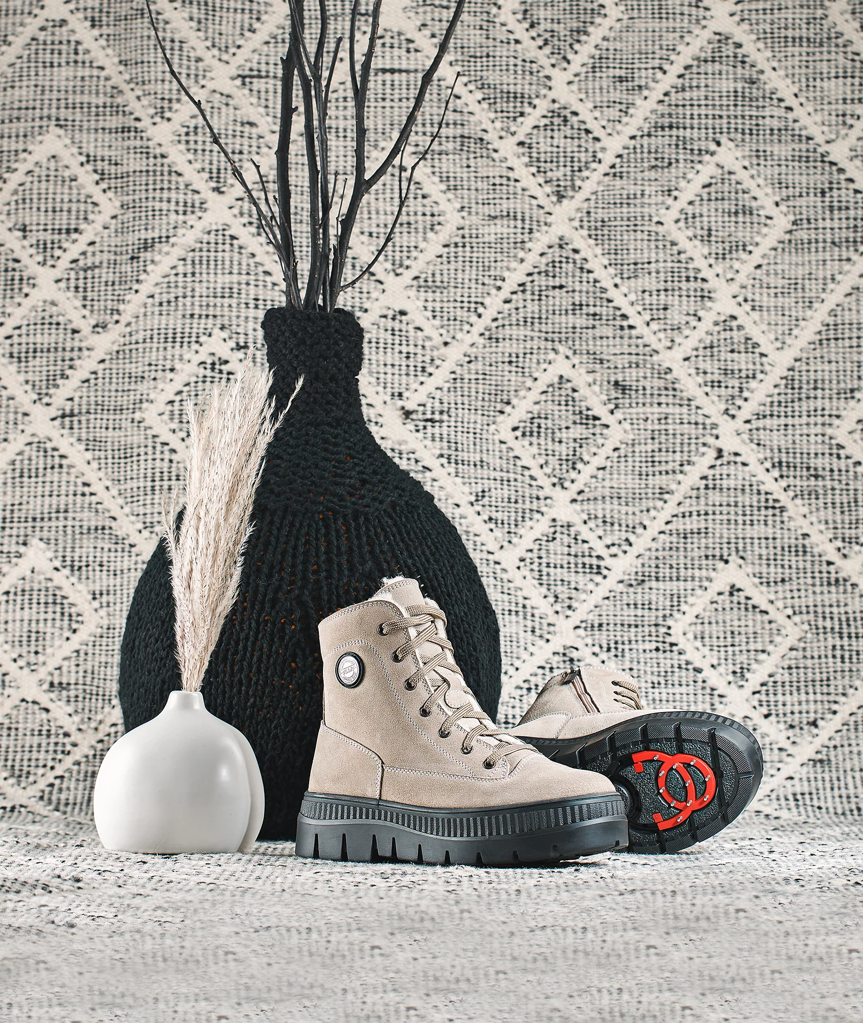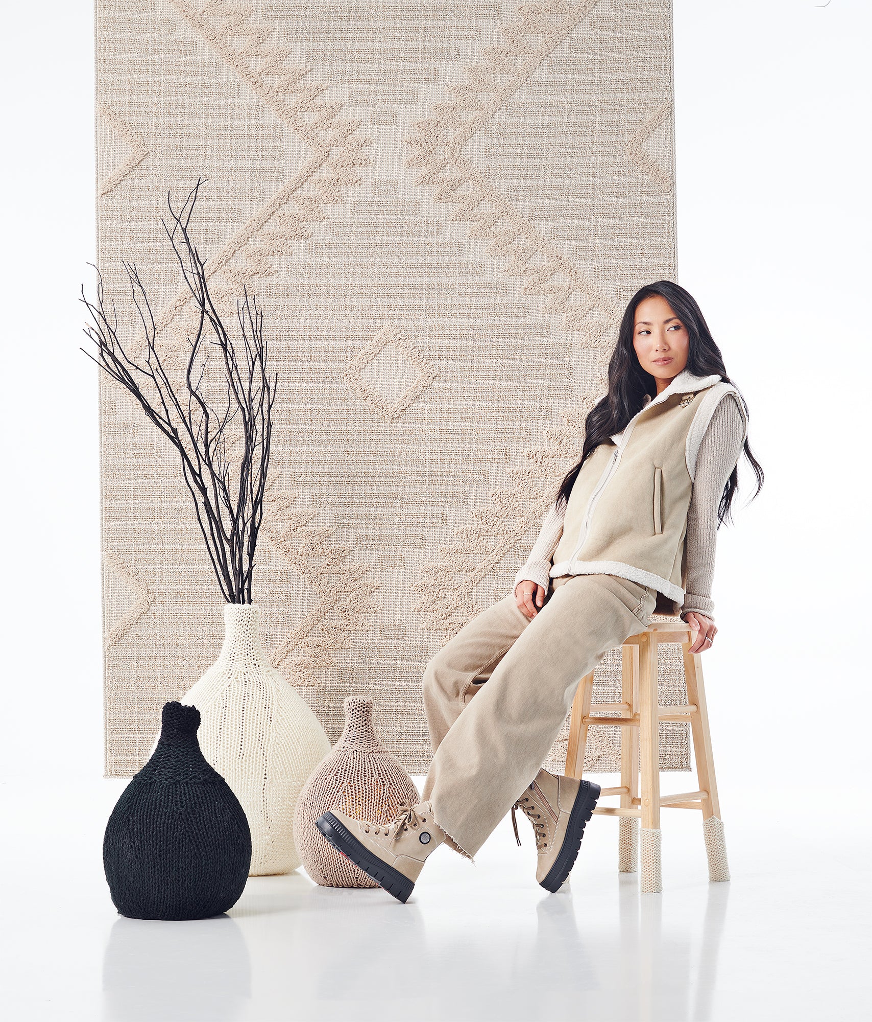 Entrez dans le paysage hivernal et faites une déclaration de style avec le modèle Glee. Ces bottes présentent non seulement un design tendance, mais vous permettent également de mettre en valeur votre individualité avec la semelle plateforme à crampons. Façonnée d’une tige en hydro-suède, elle embrasse les éléments avec confiance, captant l’attention de tous où que vous alliez.
