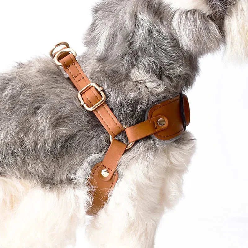Harnais en cuir synthétique avec emplacement Airtag pour Chien
