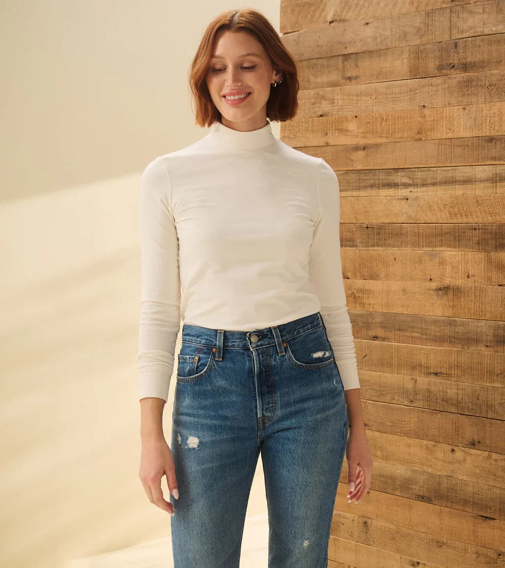 HAUT À COL MONTANT CRÈME POUR FEMME