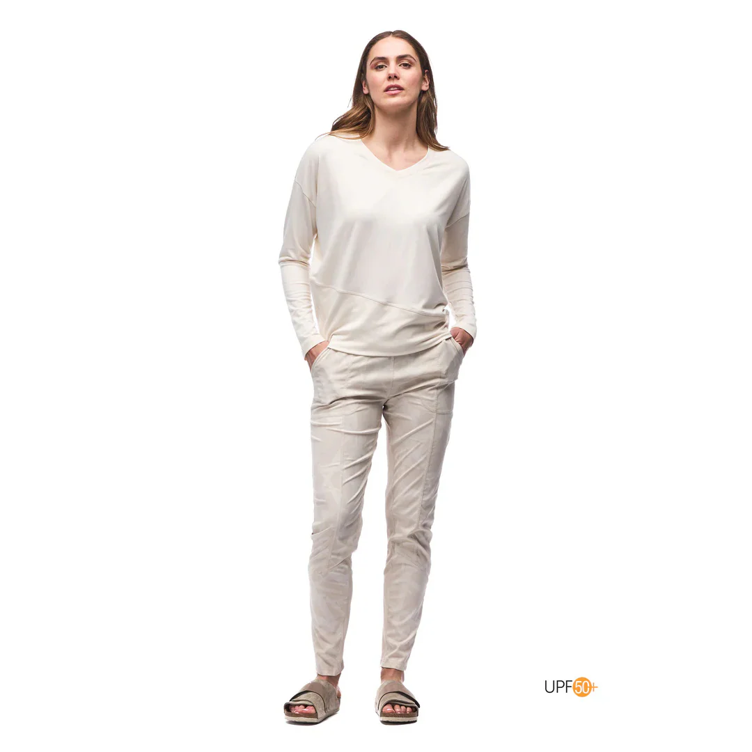Un haut à manches longues qui se porte autant en randonnée, en voyage ou au chalet.