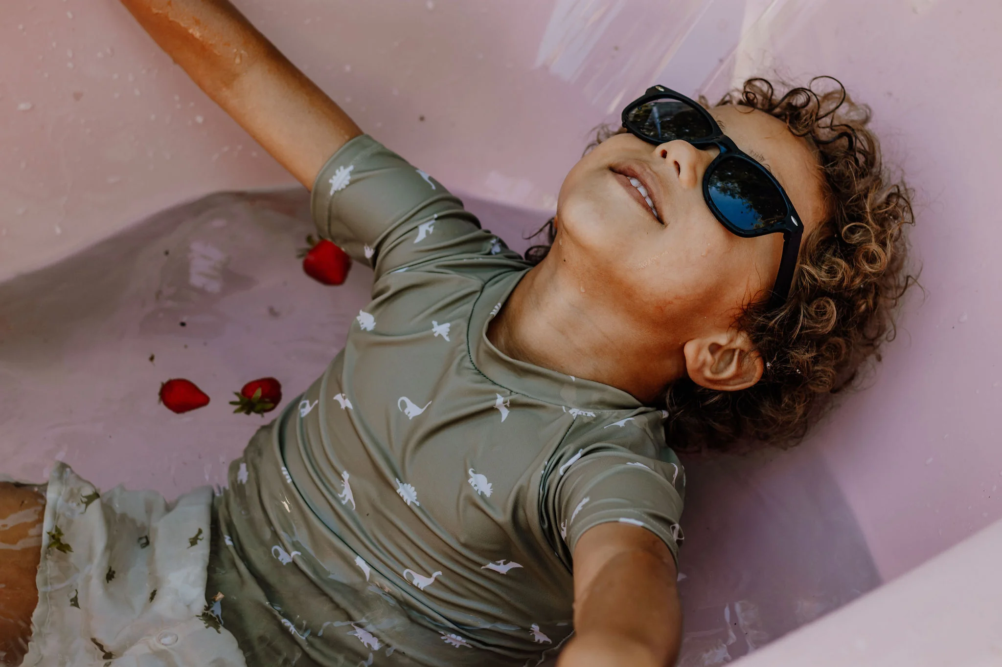 Haut anti-UV de bain confortable et extensible, facile à enfiler.