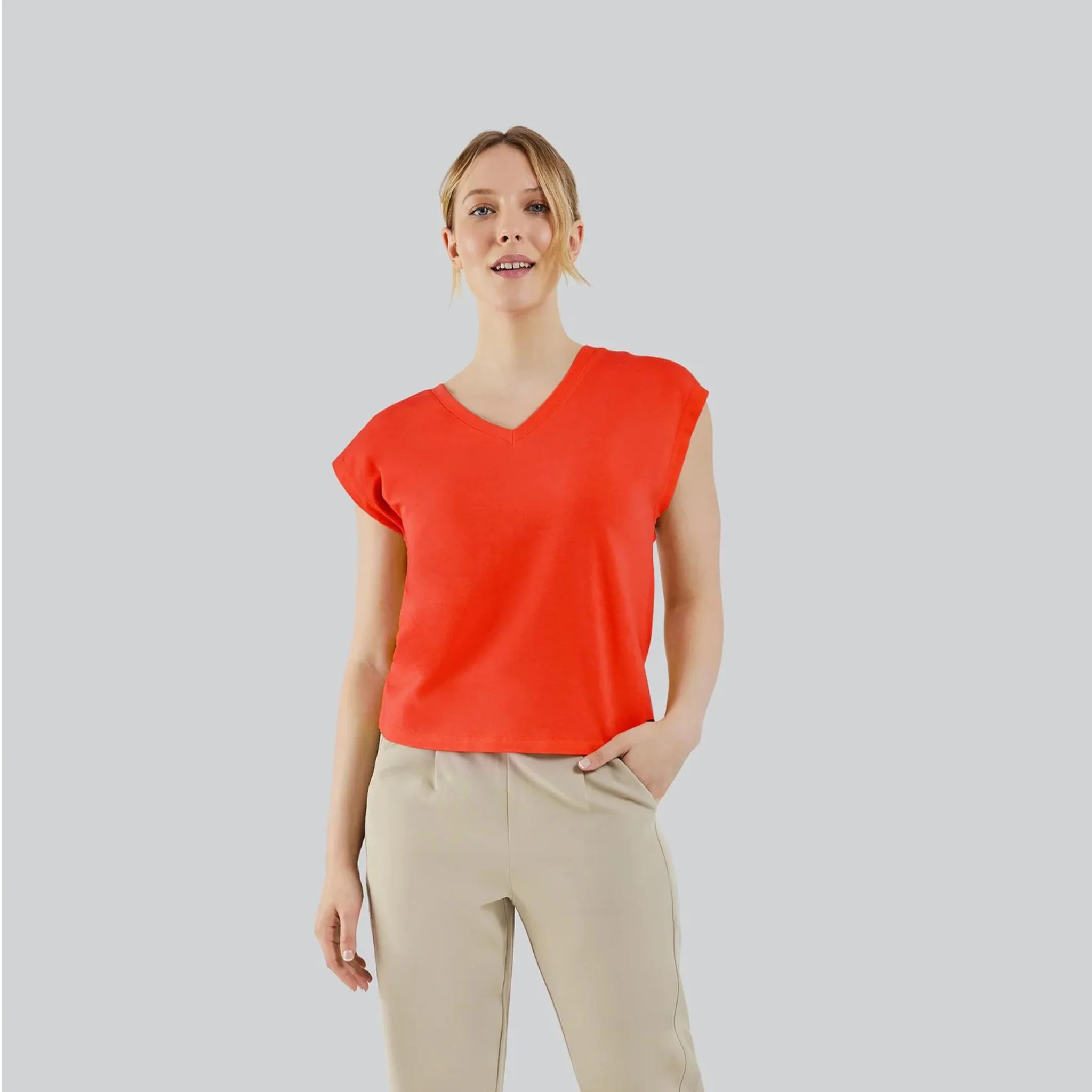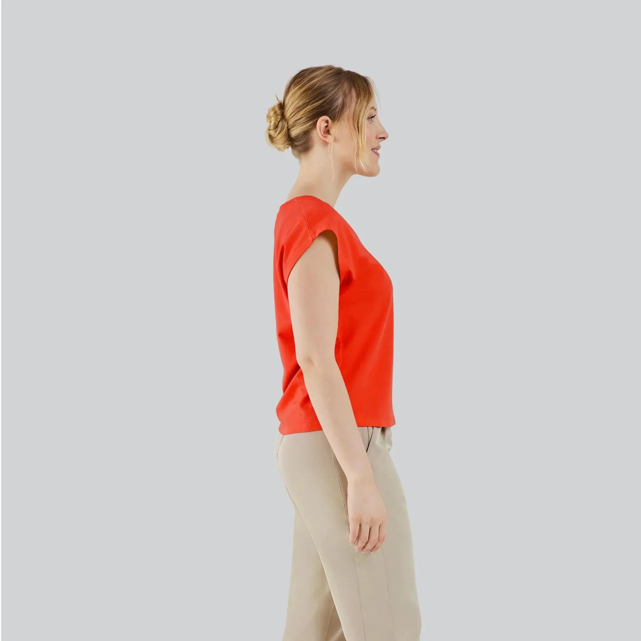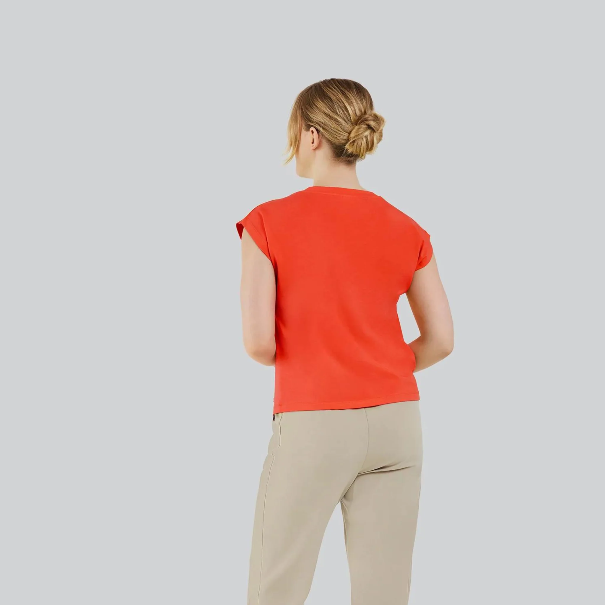 Le haut manches courtes BRIGHTON 2.0 couleur grenadine pour femme de Fig est un essentiel dans sa garde-robe.