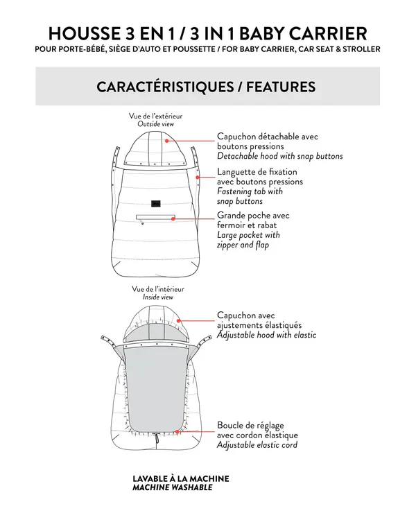 HOUSSE 3 EN 1 MULTIFONCTION POUR SIÈGE D’AUTO & POUSSETTE