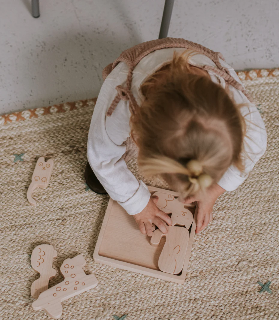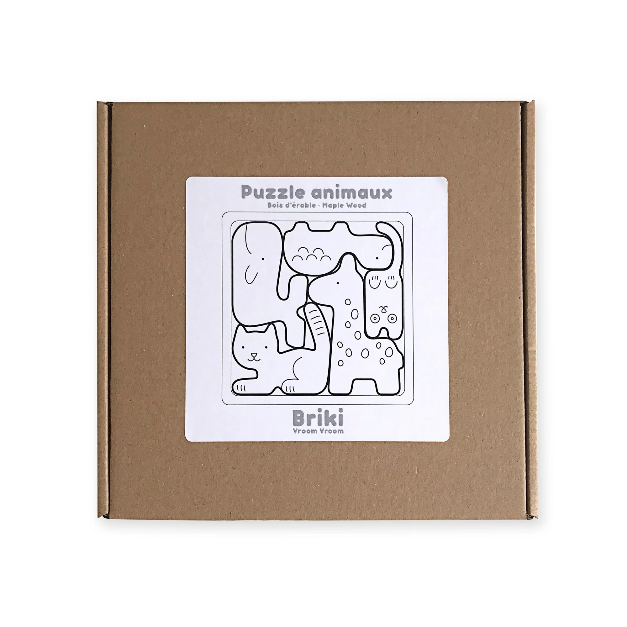 Puzzles encastrables présentés dans une jolie boîte en bois.