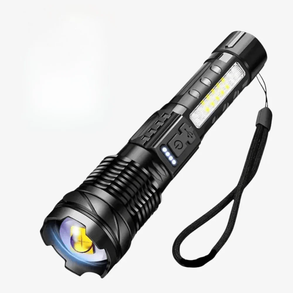 Lampe de poche LED polyvalente et robuste, idéale pour les activités en plein air telles que le camping, la randonnée et les interventions d’urgence. Grâce à sa puissance de 5000 lumens et sa portée jusqu’à 1000 mètres, cette lampe offre une visibilité exceptionnelle même dans l’obscurité la plus complète.