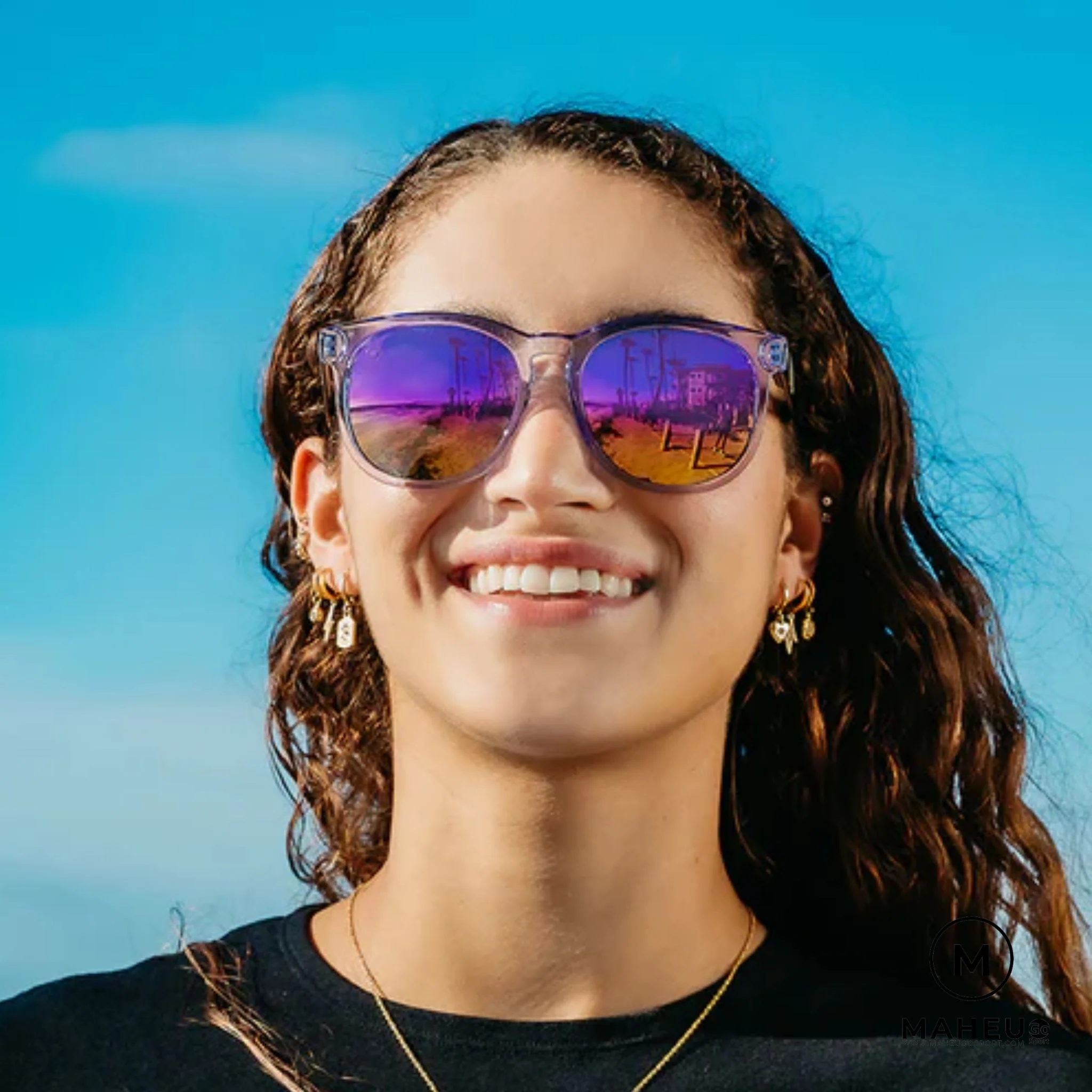 Avec sa monture cristal lavande et ses verres miroir lavande-champagne, la lunette solaire Blenders offre une harmonie éclatante.