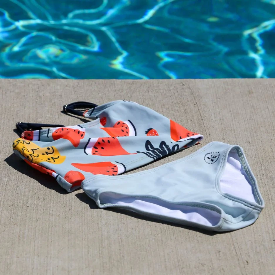 Le maillot de bain 2 pièces aux motifs de fruits de K5 Clothing est doux et confortable.
