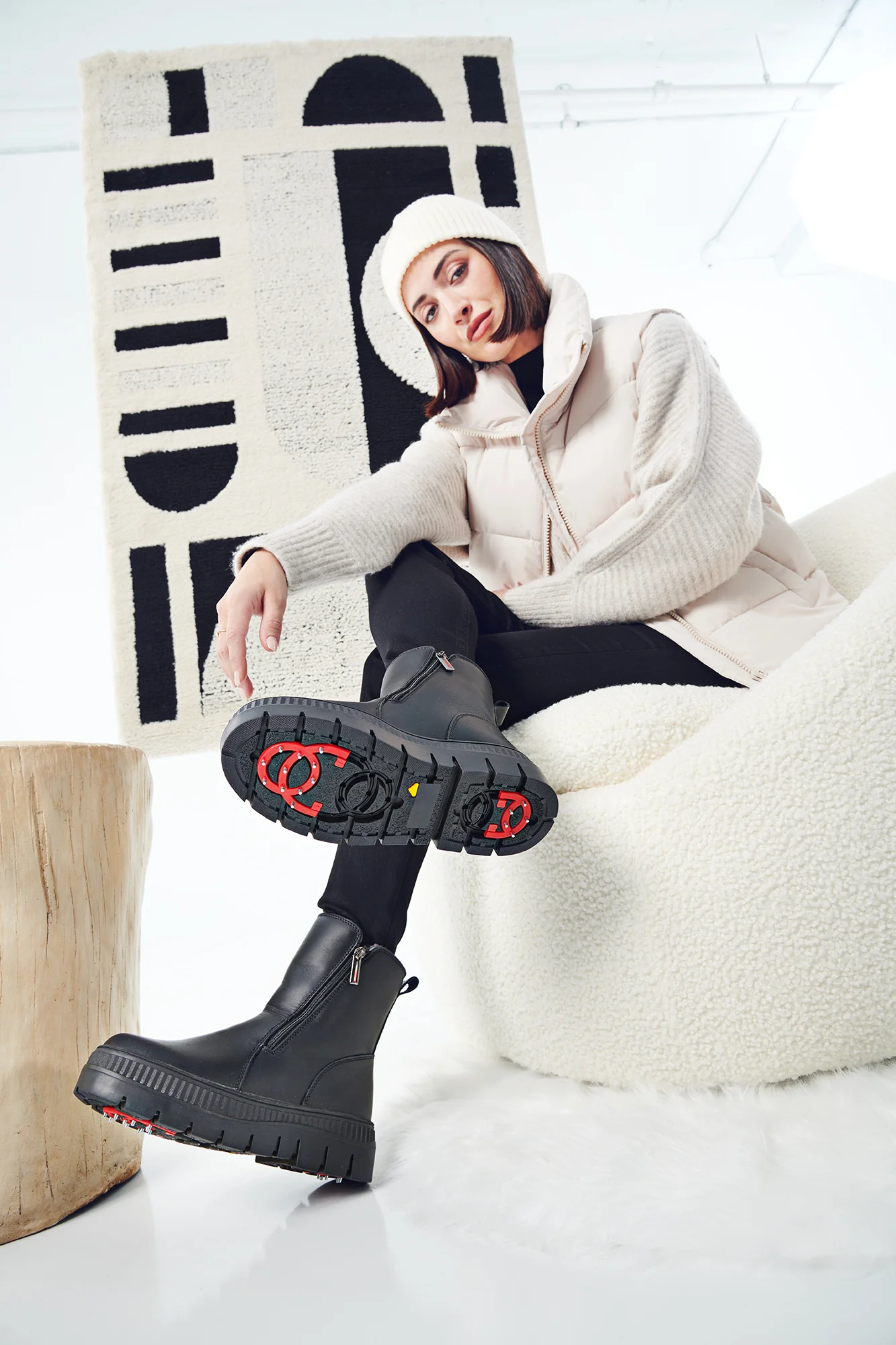 Affichez votre style en choisissant le modèle Metric. Équipé de la nouvelle semelle plateforme à crampons, le modèle Metric garantit un look audacieux et polyvalent en toute occasion. Profitez de la tige en cuir pleine fleur et de deux fermetures éclair permettant une ouverture plus large pour les enfiler en toute facilité et vous donner encore plus de confort dans vos déplacements.