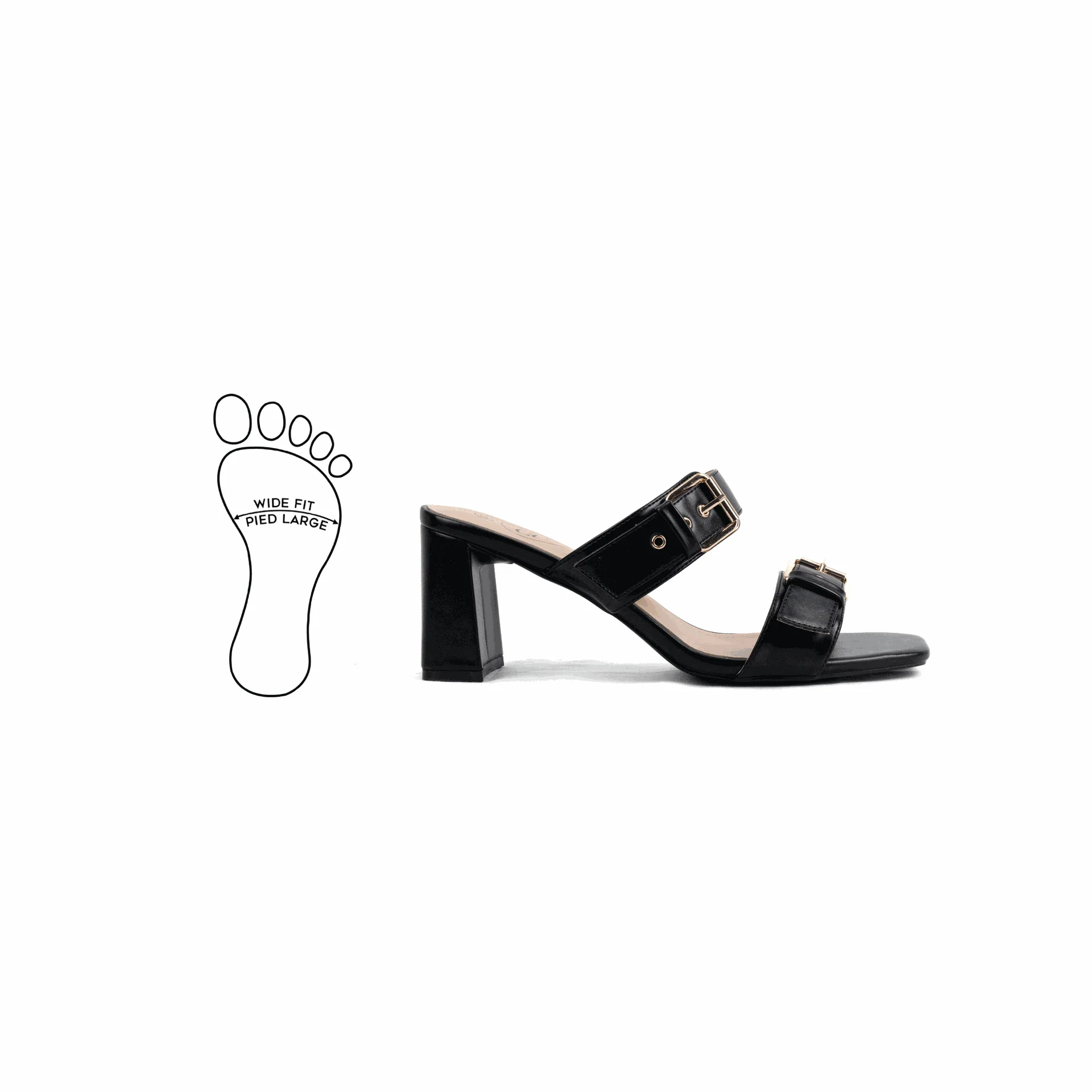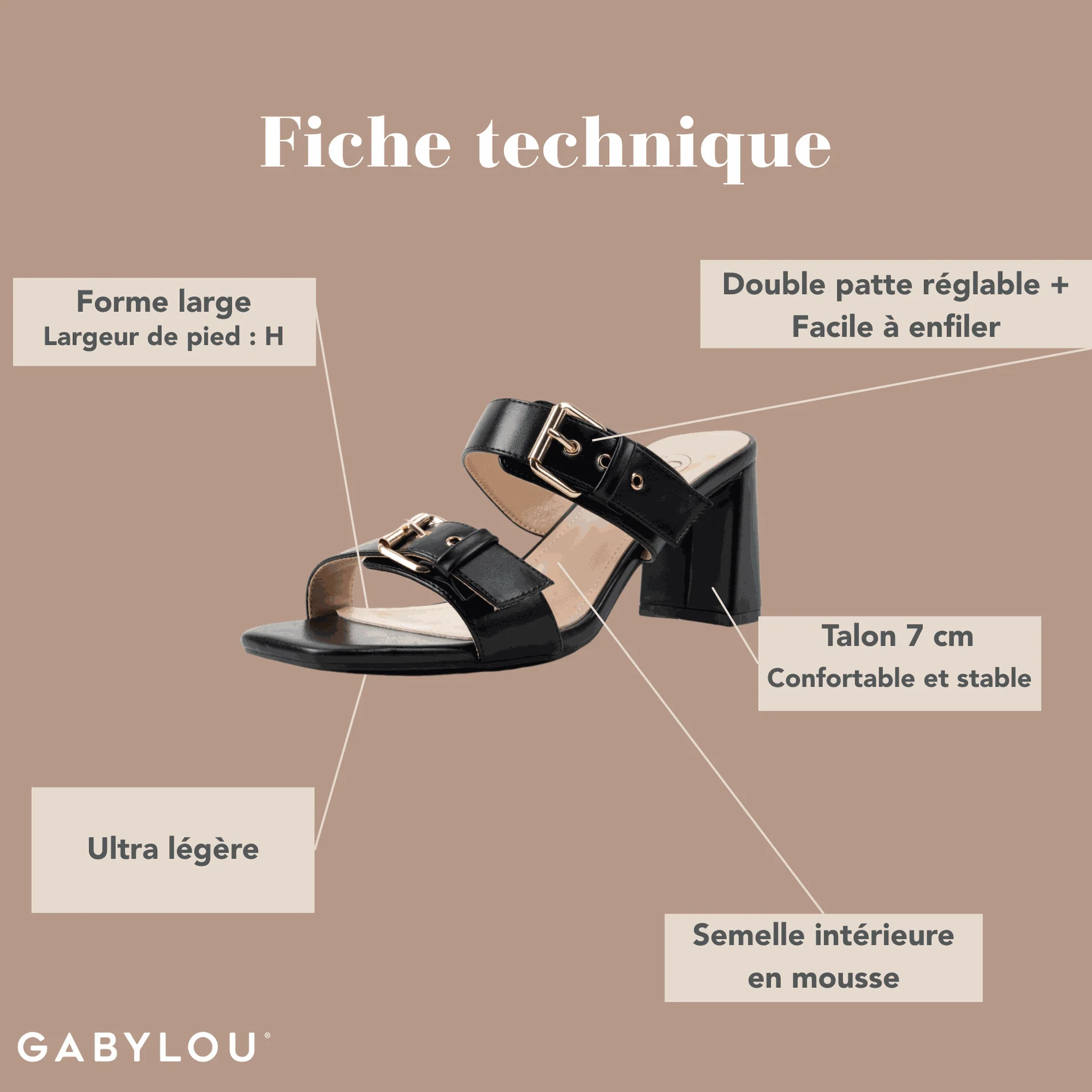 Affirmez votre style avec les mules IZA, parfaites pour les pieds larges. Avec leurs boucles dorées sophistiquées et leur talon carré stable, elles offrent un confort optimal tout en ajoutant une touche chic à votre look. Faciles à enfiler, elles sont idéales pour une allure élégante et moderne en toute occasion.