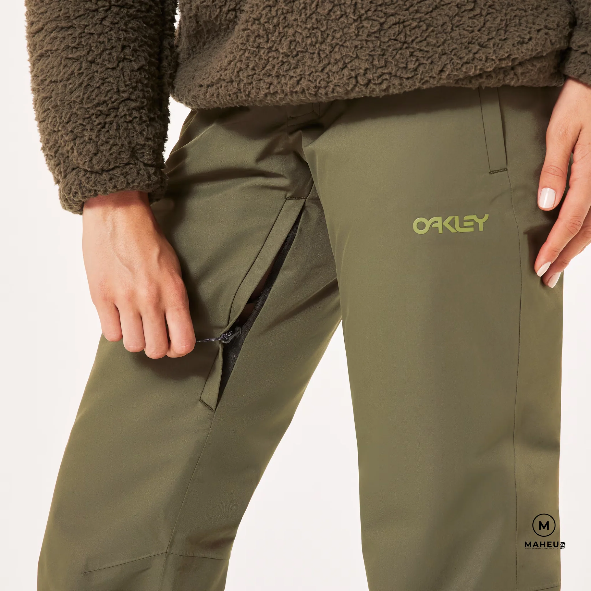 Le pantalon isole Oakley Jasmine pour femme combine imperméabilité et respirabilité grâce à son tissu déperlant en polyester recyclé.