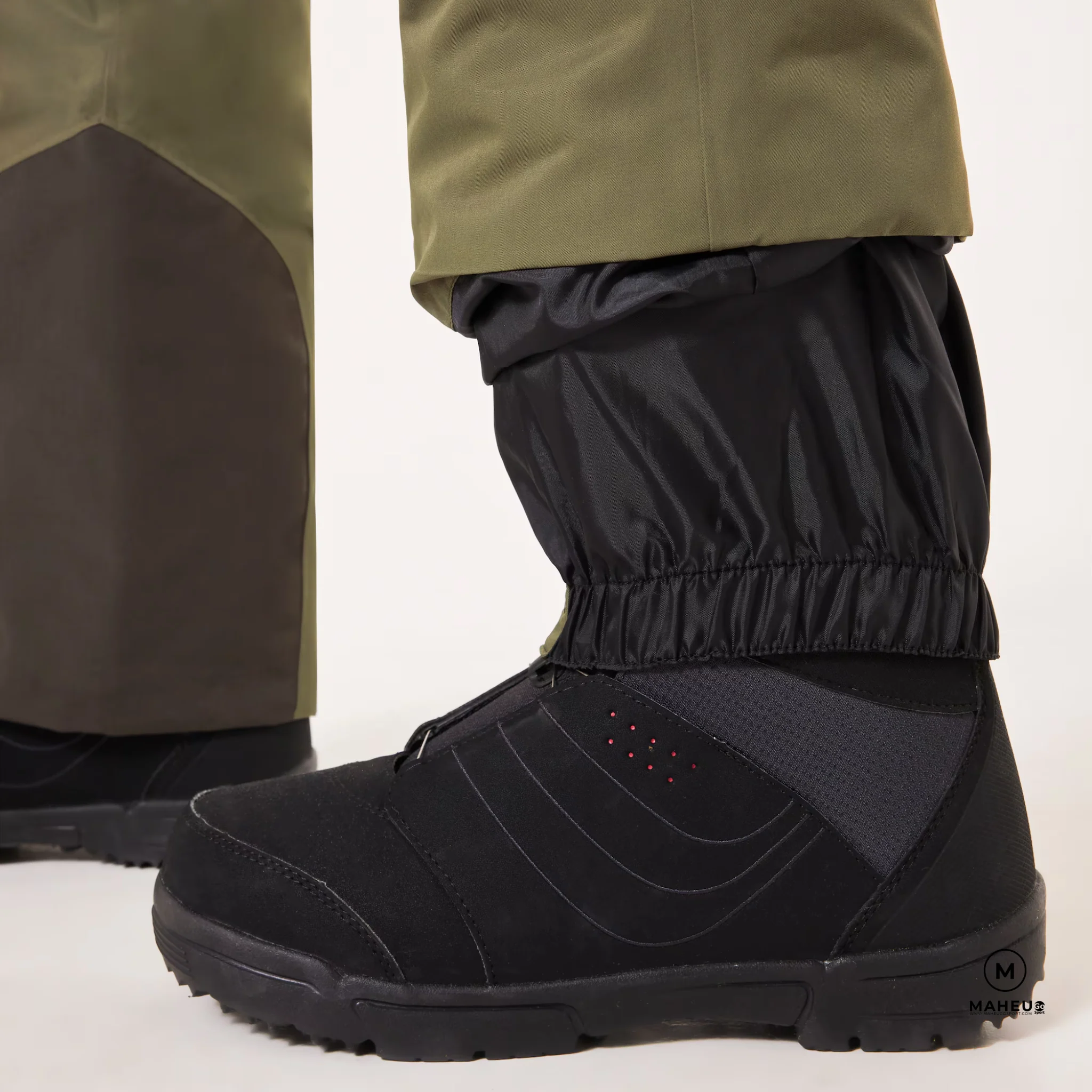 Les guêtres intérieures avec crochets métalliques empêchent la neige de pénétrer, tandis que les aérations aux cuisses régulent la chaleur.