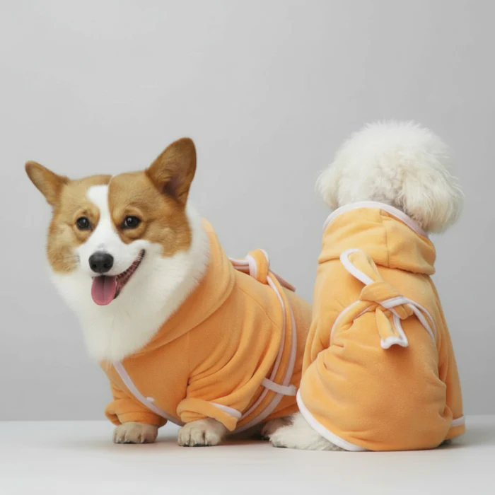 Adoptez le peignoir chien avec ceinture, conçu pour sécher rapidement et offrir un confort optimal après chaque bain.
