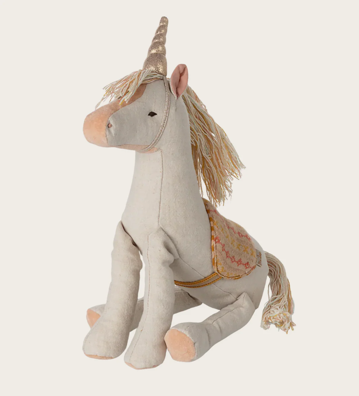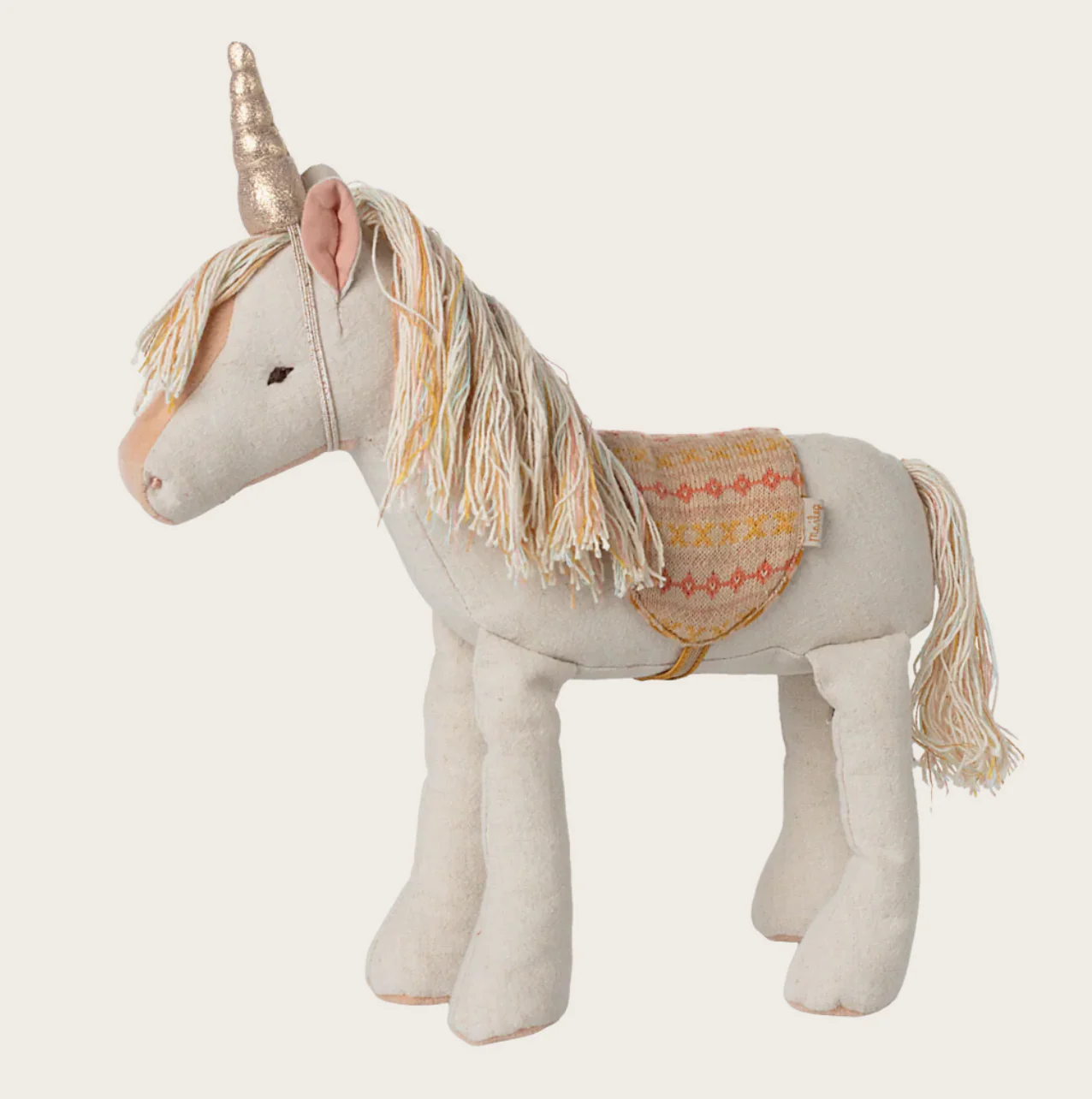 Avec cette licorne aux couleurs vives et à la corne dorée, il y a de nombreuses histoires à raconter.