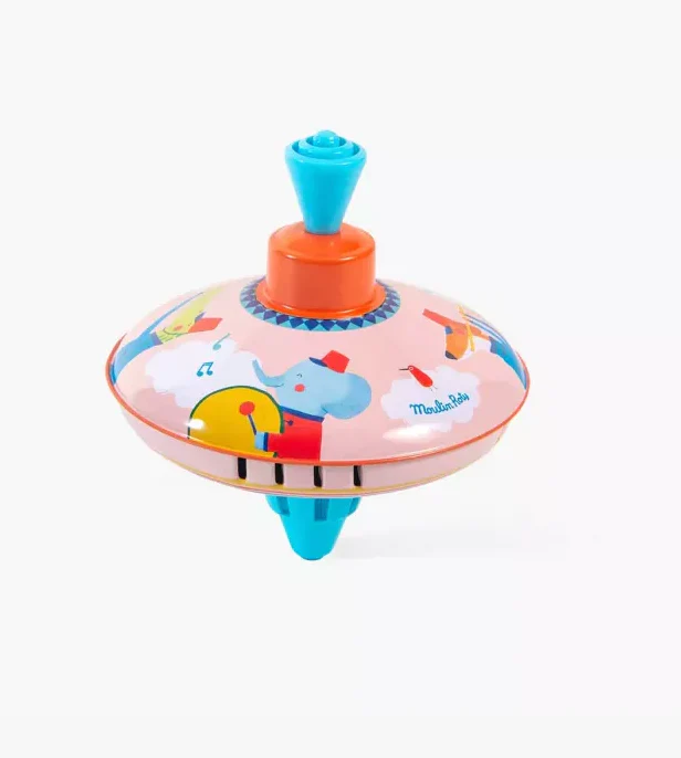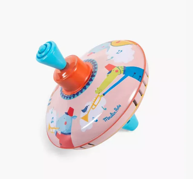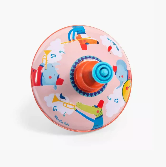 Petite toupie en métal, illustrée d’une fanfare d’animaux joyeux et colorés ! Les voilà qui avancent en cadence, au rythme de la toupie lancée à toute vitesse ! Un classique des jeux qui amusent autant les petits que les grands.