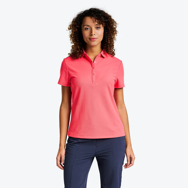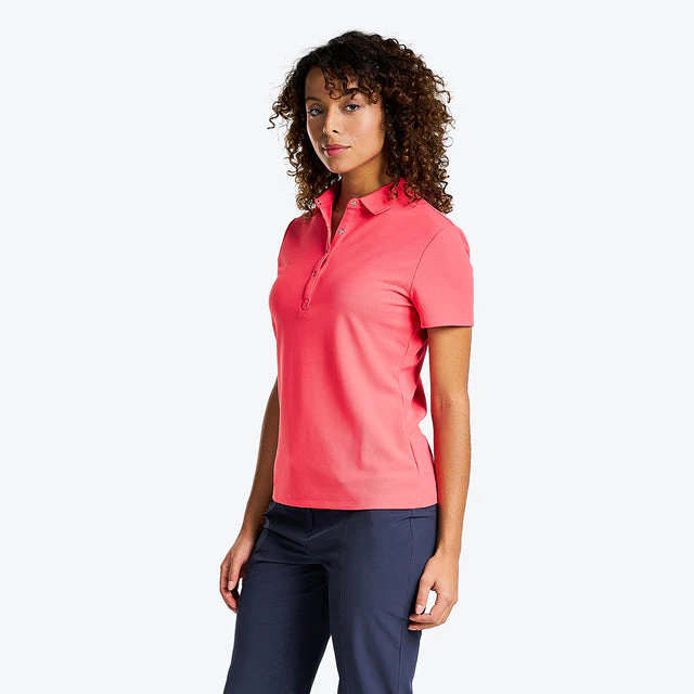 Ayez du style, du confort et la protection UV optimale avec le polo Brenna de NVO. Disponible en plusieurs couleurs, amusez-vous à changer votre style en fonction de votre humeur. Son tissu à séchage rapide et sa protection solaire FPU 40+ assureront votre plaisir de jouer. Sa matière COOLMAX® le rend léger, doux et permet une excellente évacuation de l’humidité.