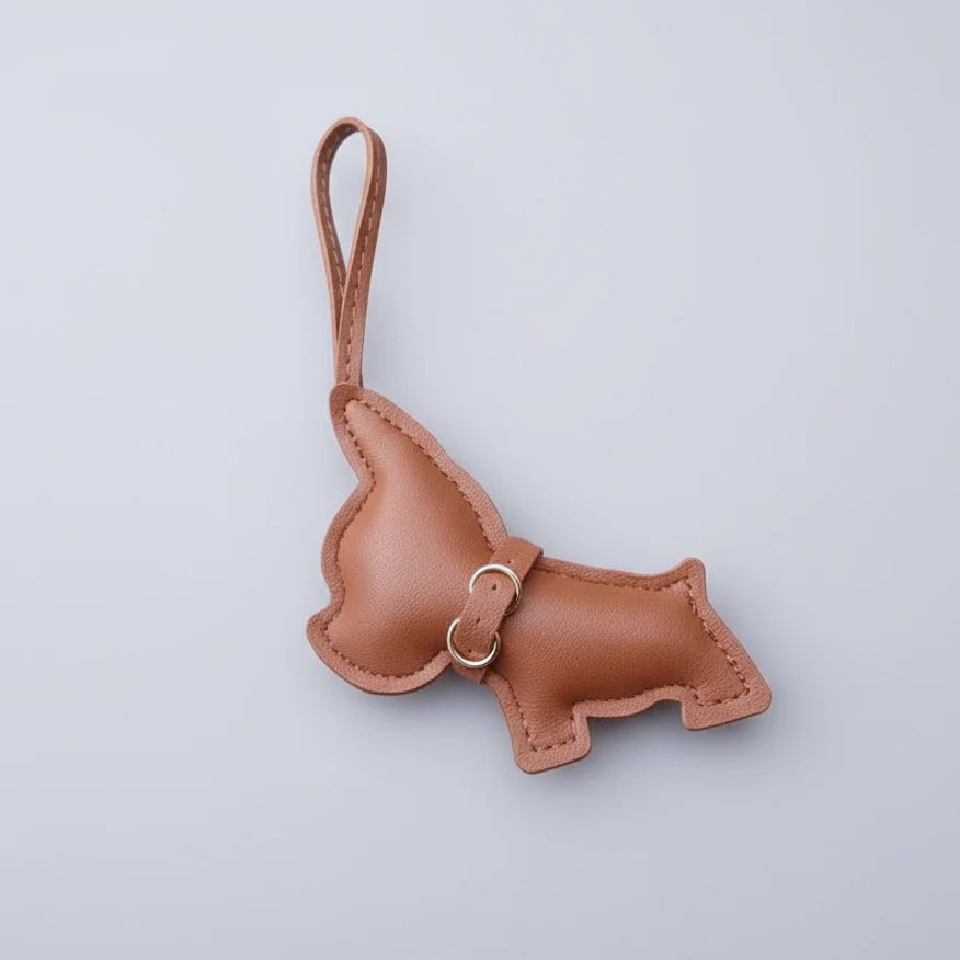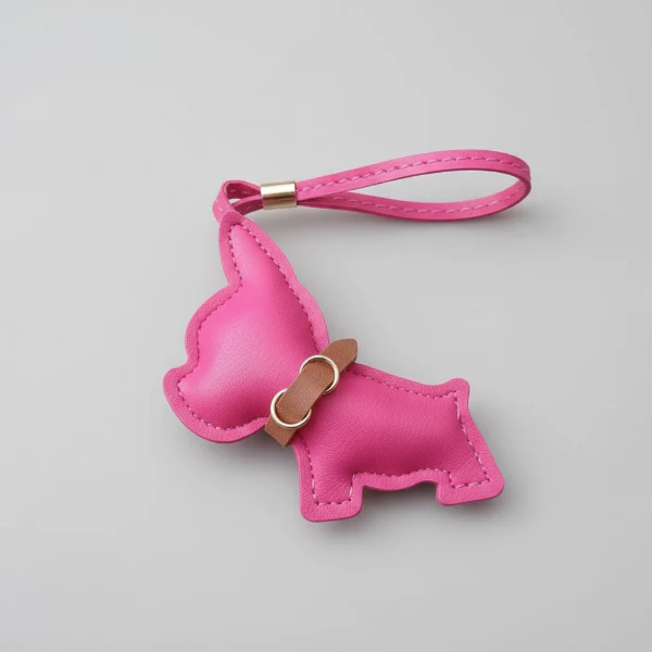 Porte Clés Bouledogue En Simili Cuir