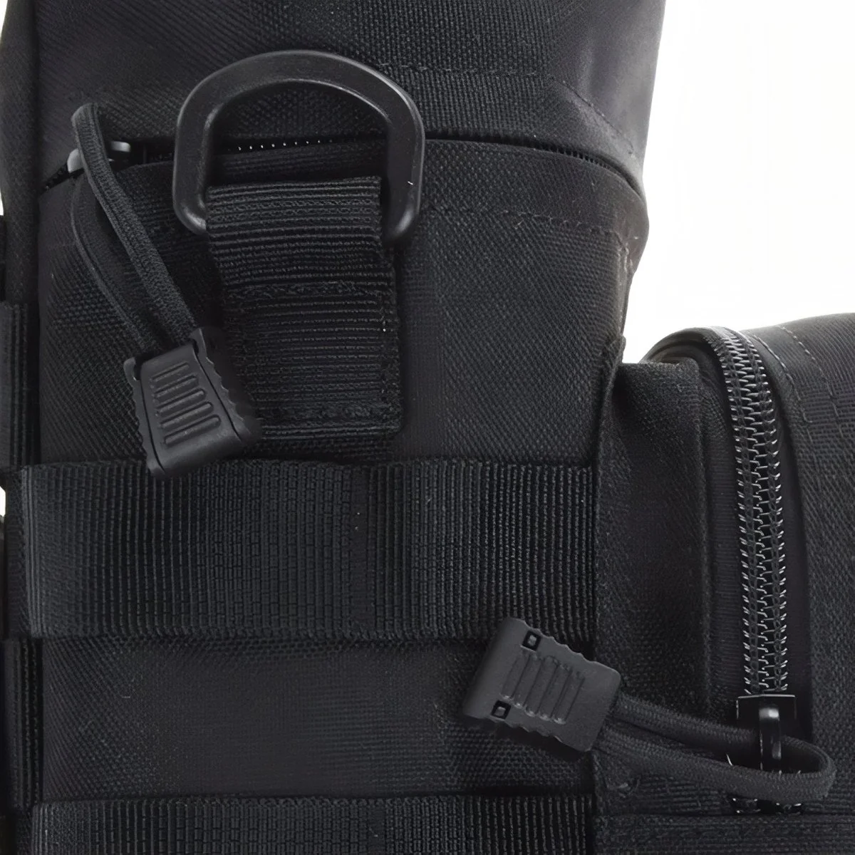 • Anneau en D pour attacher mousquetons ou accessoires supplémentaires