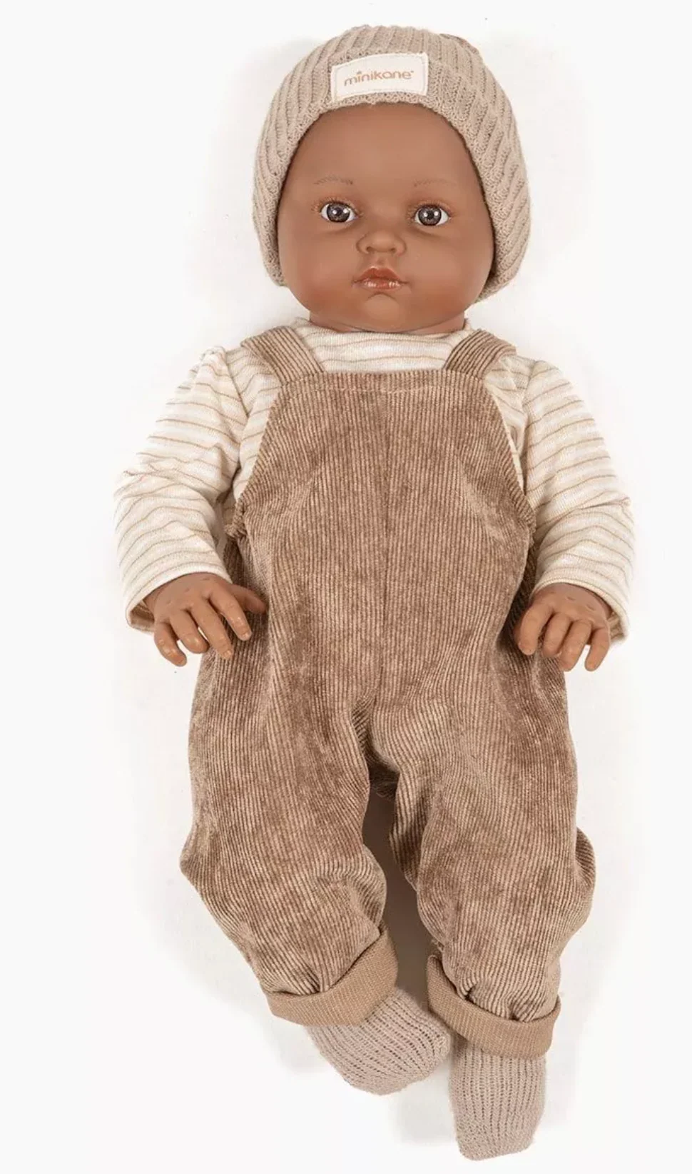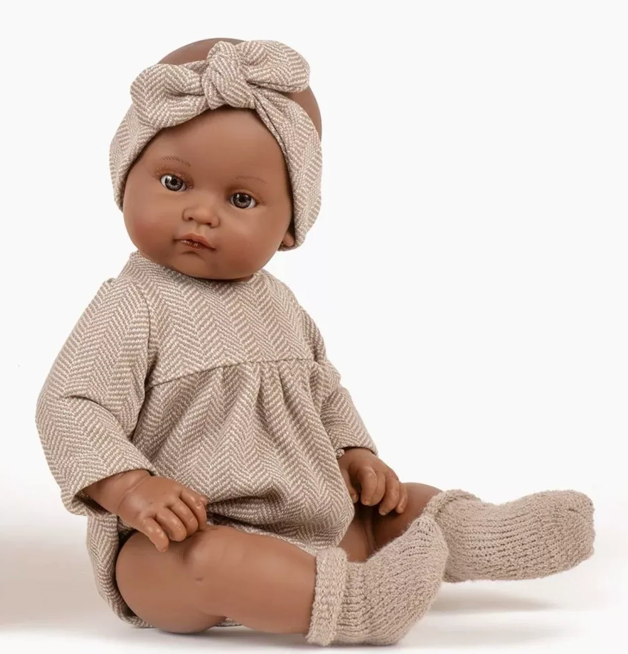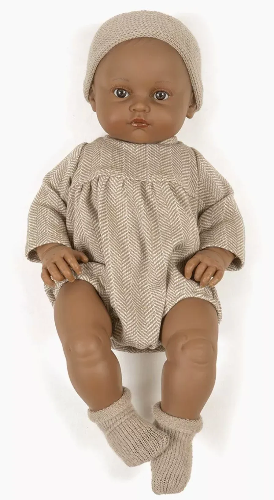 Poupées en vinyle souple de 47 cm, les Bambinis possèdent un visage rond et très expressif. Leur dressing et leurs accessoires en gaze de coton, nid d’abeille ou velours sont faciles à enfiler et toujours, fabriqués dans l’atelier parisien de la marque !