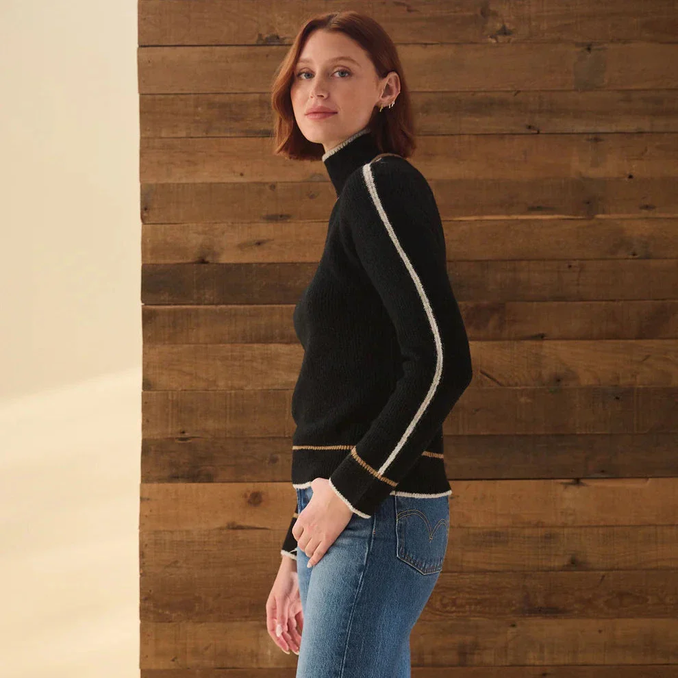 - Col ras du cou avec liaison tubulaire contrastée à la couture du cou